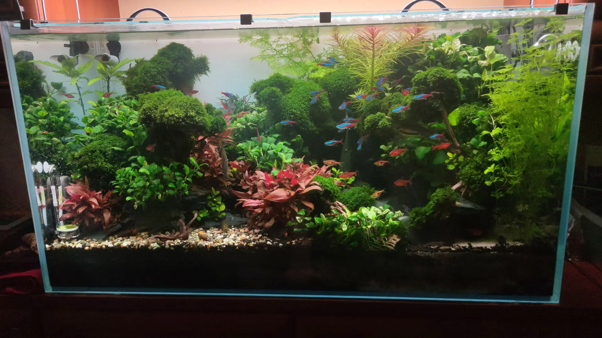 Popis: Chtel jsem mit doma neco hezkeho a necemu se venovat...Tak jsem se zamyslel a sel do akvarka...Spoustu toho nacetl, nastudoval, probral s mnoha lidmi a zacal v unoru stavet...trvalo to vlastne do vanoc 2023 nez to bylo nejak komplet zajete...Puvodni predstava byla malinko jina, libi se mi IAPLC, aquascape atd...Ale nakonec z toho vysla nejaka kombinace aquascapu, rostlinneho a spolecenskeho akvarka s piskopadem :-DDD Nuz...co uz...Asi uz sem videl i horsi prvni akvarko :-D Tak uvidime...