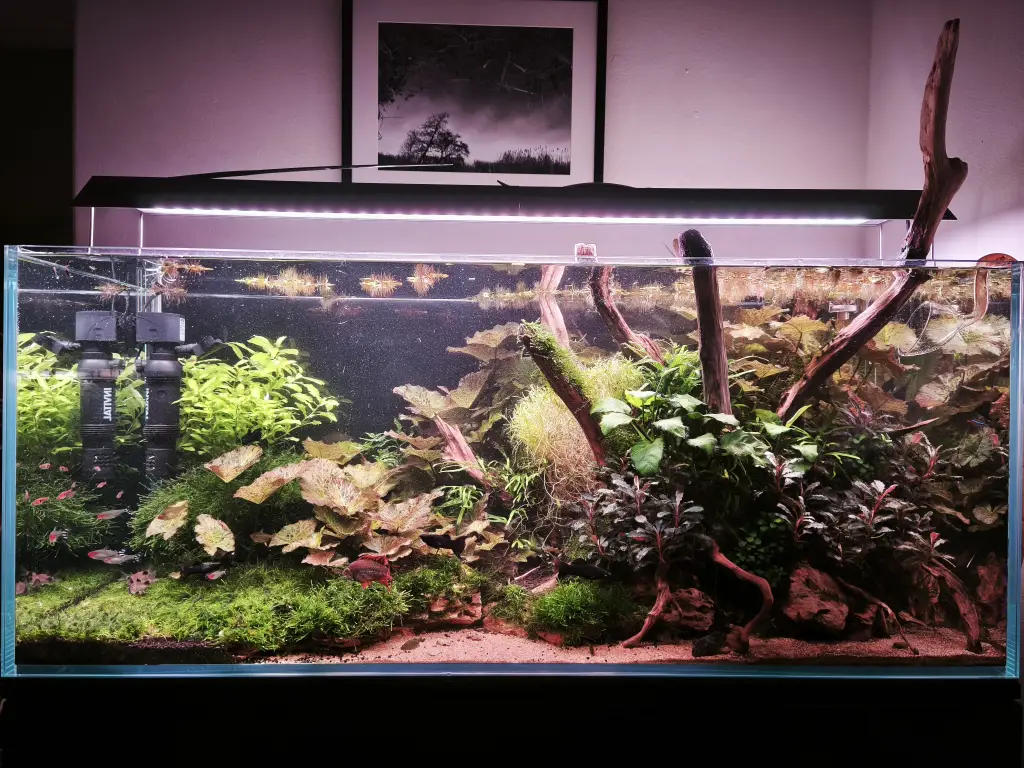 Poznámka: akvárium založeno metodou Dark Start 14.1.2024. Rostlinami osázeno 16.2.2024.