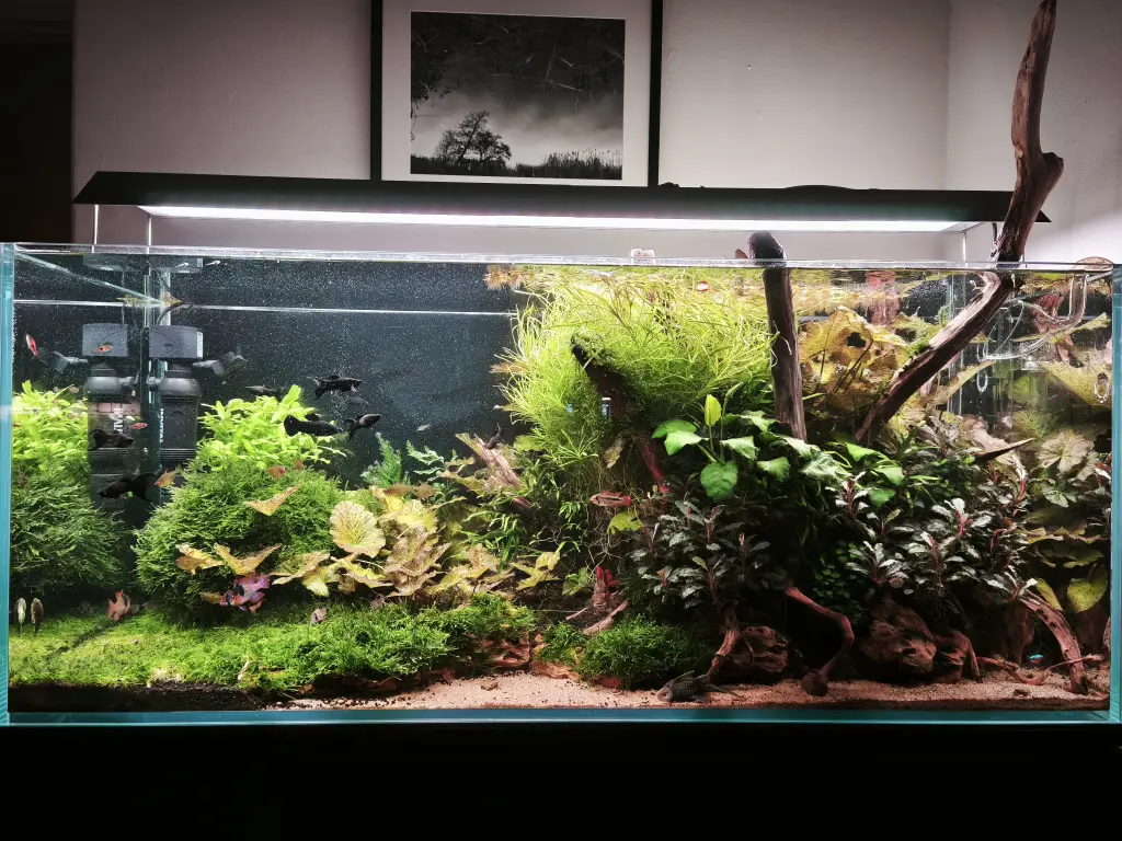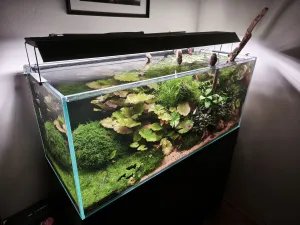 Poznámka: akvárium založeno metodou Dark Start 14.1.2024. Rostlinami osázeno 16.2.2024.