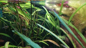 Rastliny predstavujú rôzne druhy echinodorov, valisnerie, sagitarie, ludwigie, kabomba, myriophyllum, lotus plus plávajúce
