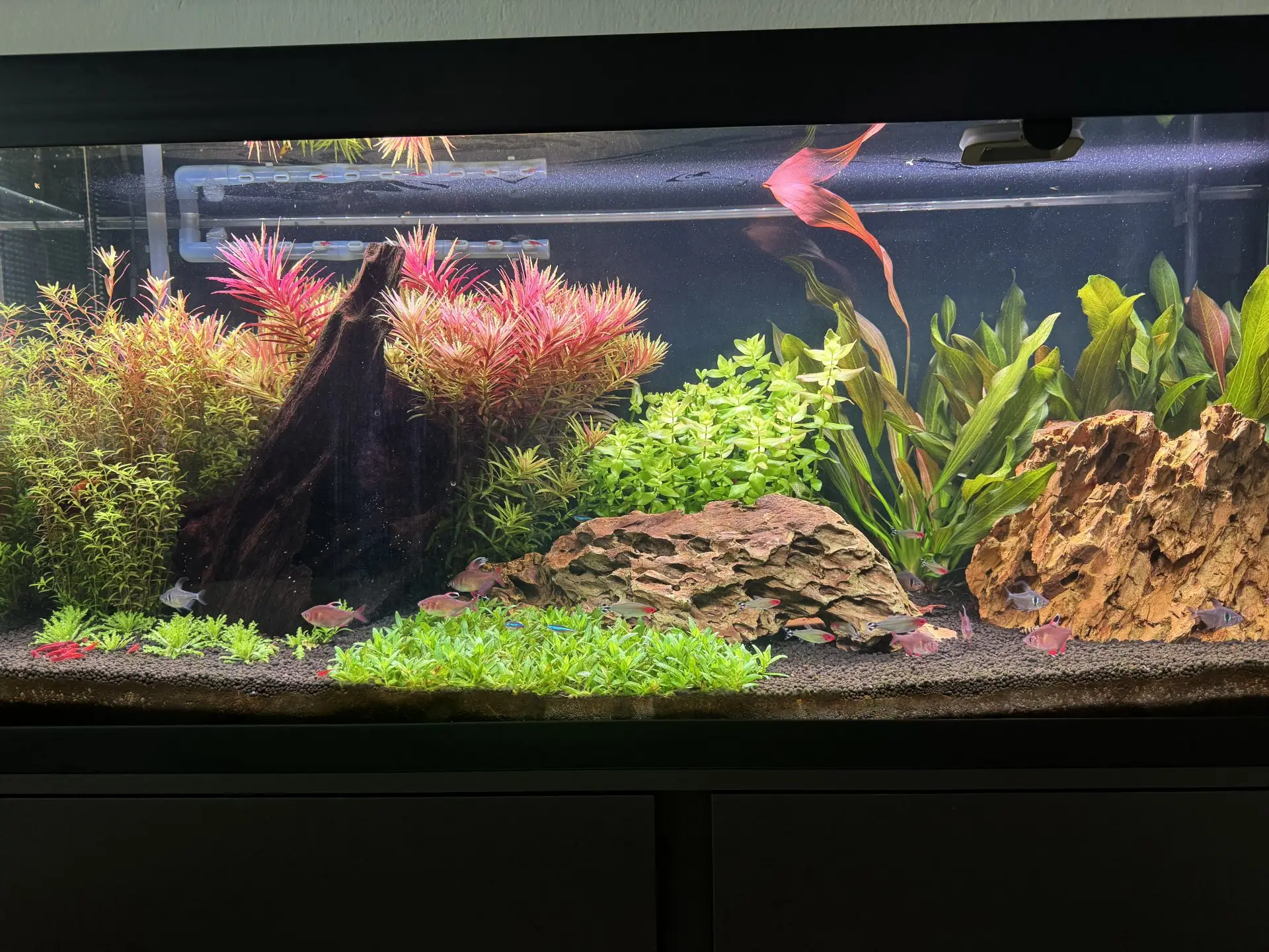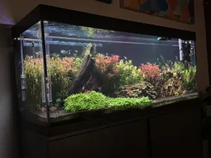 Popis: Spoločenske akvárium založené najskôr ako živočíšne no našiel som záľubu v rastlinách a tak som to spojil do jednej vášne.