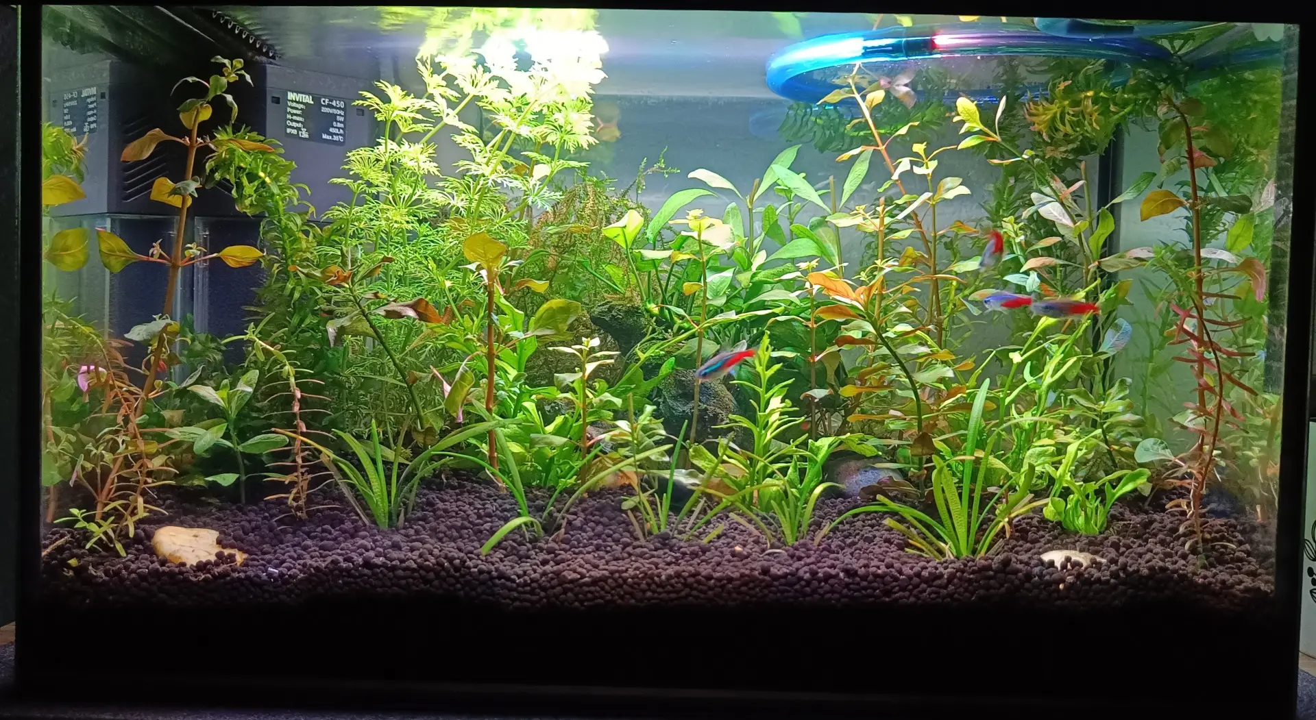 zarostlejší, vypadá to pěkně. Držím palce, aby Ti už akvárko dělalo jen radost.