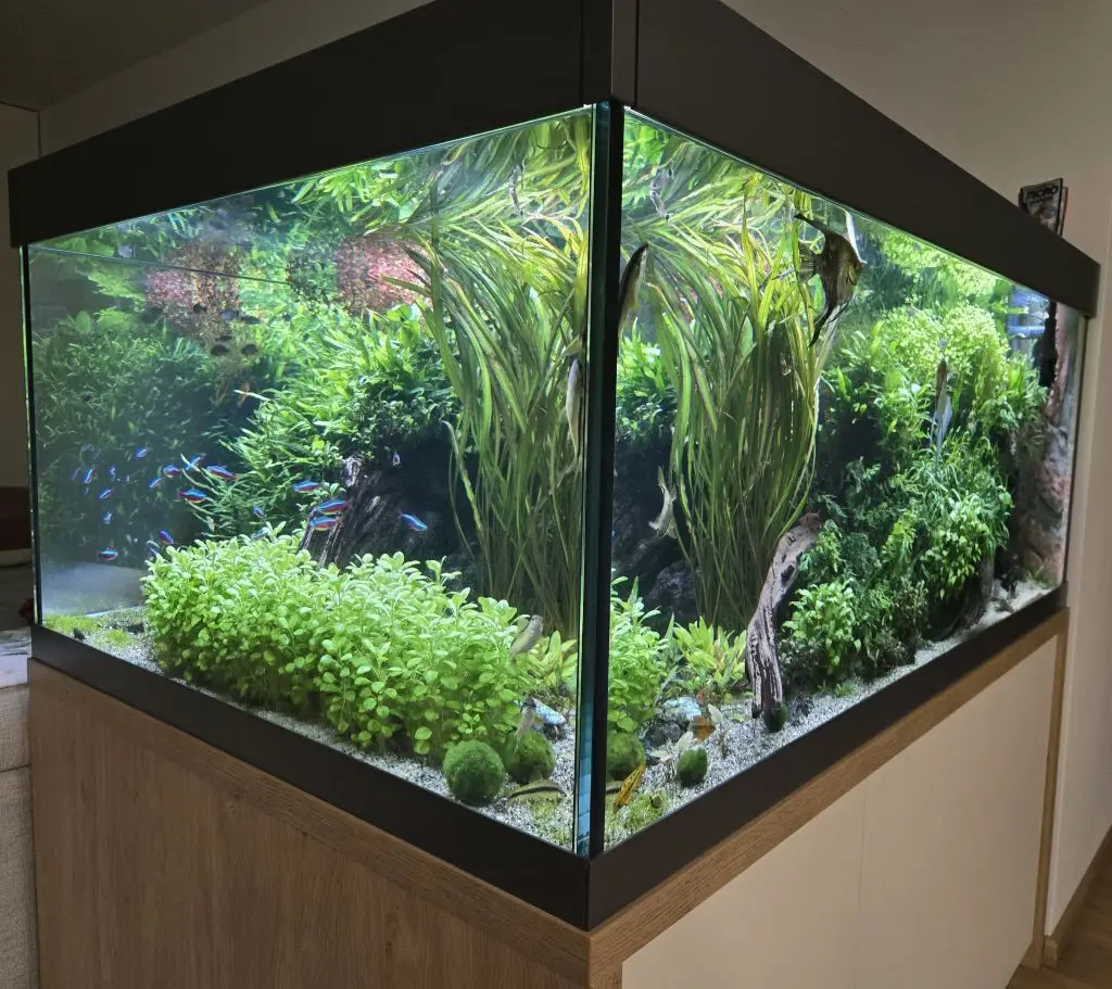 Krásné akva palec pěkná litráž, pěkné ryby a ta zeleň jak je situována ve středu, paráda