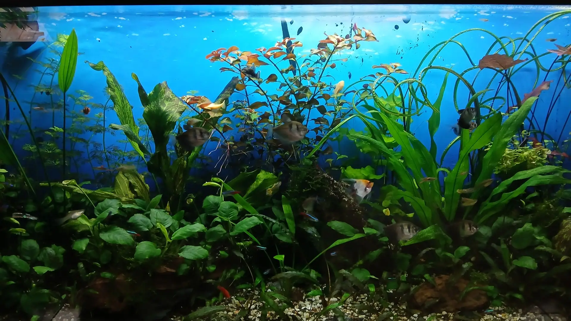 | 23 12.2025 | vyměna 80l odstatej vody spojena s povrchovým odkalovanim. poprvé přidan "TORBENT" 25 ml. posunutí o 40 centy prutokový difuzor na vytokové hadice. pro delši cestu CO2,tim padem lepši rozpuštěni. zkrácení prerostlych stonků limnophily a ludvigii, presazovani valisnerii z předniho rohu dozadu. |