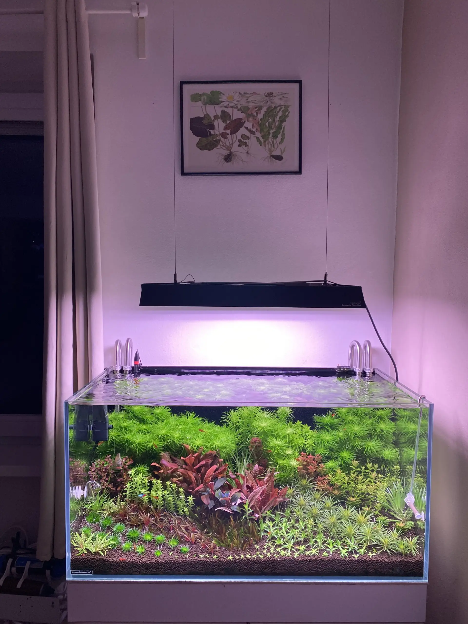 8 týden jsem vycistil filtr který byl zajety z předchozí nádrže. Vyměnil jsem rotalu bloodred, sahyadrica a heternatheru za syngonathusy. Staurogyne brown šla taky ven, rostlo to moc rychle.Předchozí rychle rostoucí rostliny pomohly s hladším záběhem nádrže. Nádrž vykazuje nulové stopy po řase. Při presazovani vždy povrchově odkalím substrát. Po výměně vody dávkuji bakterie seachem a biostimulant.