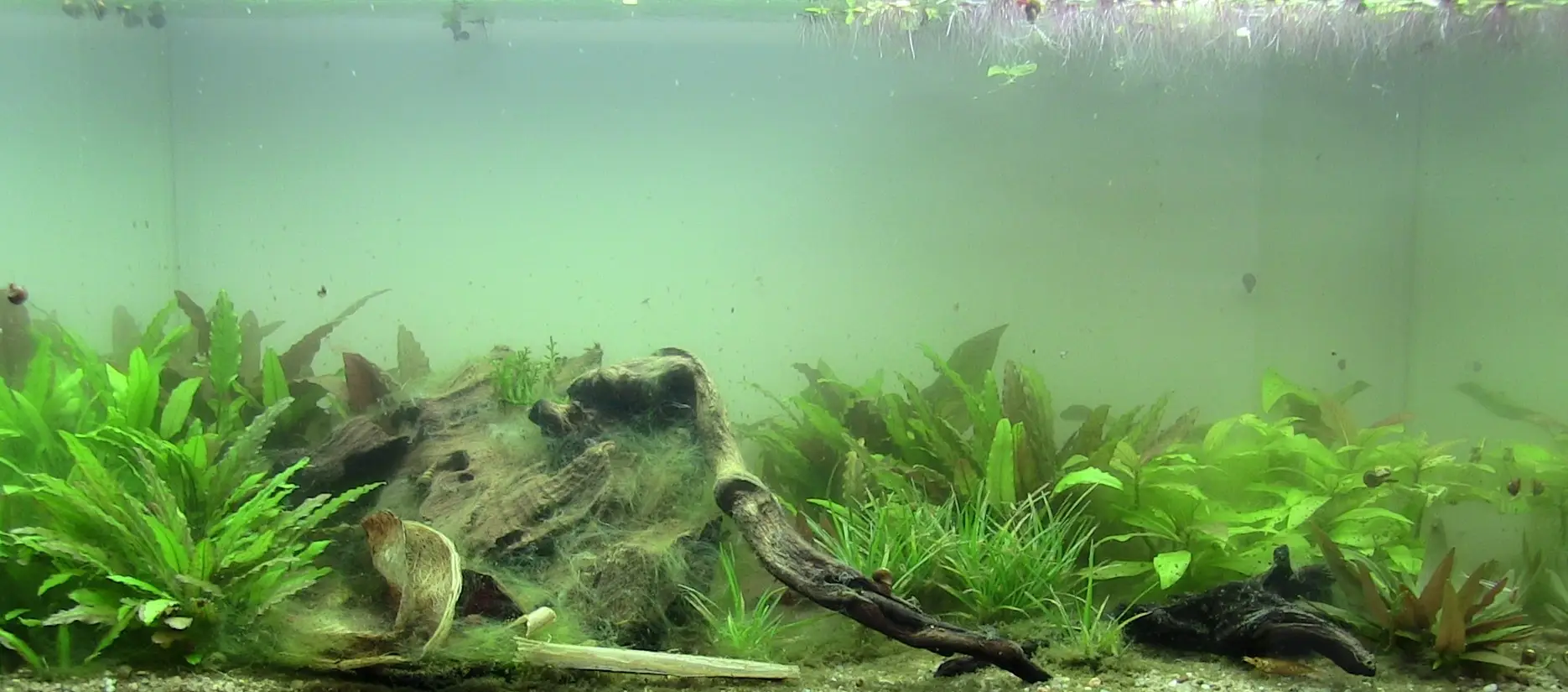 | 8 1.2026 | Motám řasy. Spousta dafnií. Krevetky ve stále stejném počtu. Zkusím se stavit na