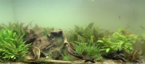 Dekorace: larvami prožraný kus mangrove, nějaké klacíky, listí, sterculia urens