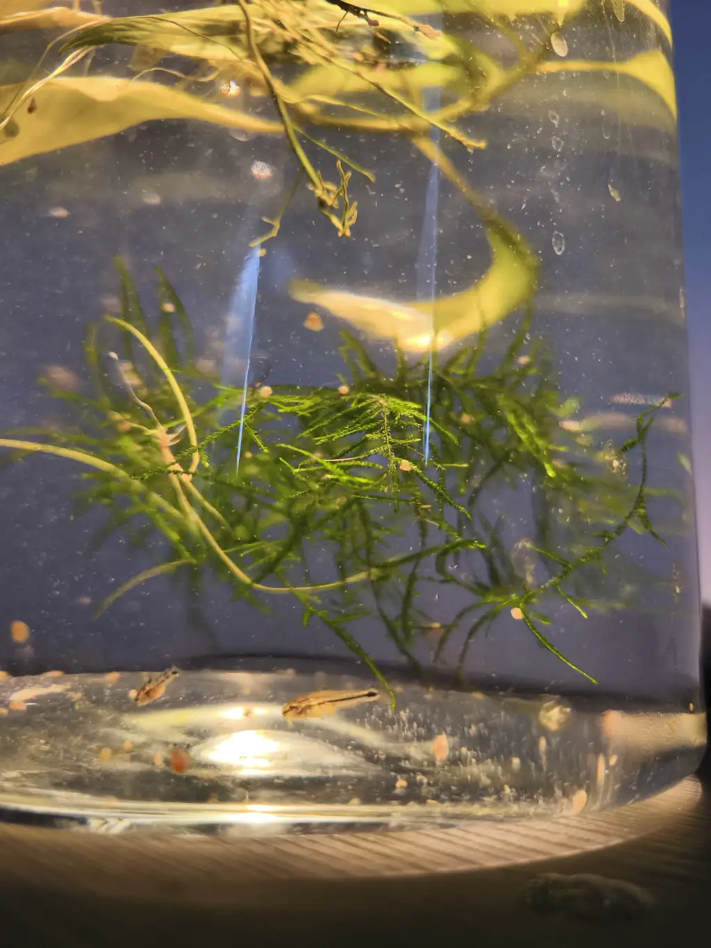Pancéřníčci se mají k světu. Každý den jim odsávám nespotřebované vírníky ze dna a dolévám čerstvou vodu z RO (upravenou minerály KH+/GH+).