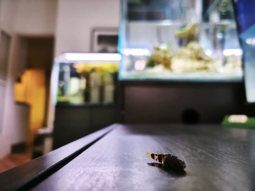 Poznámka: Kvůli čtverzubcovým skokanským dovednostem (viz deník z 27.3.2025) je akvárium zakryto čirým 5mm plexisklem.
