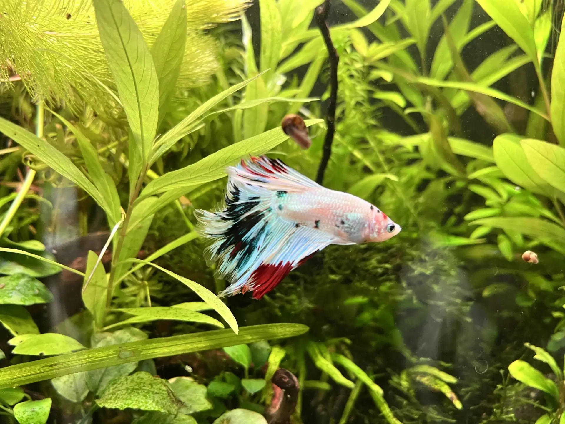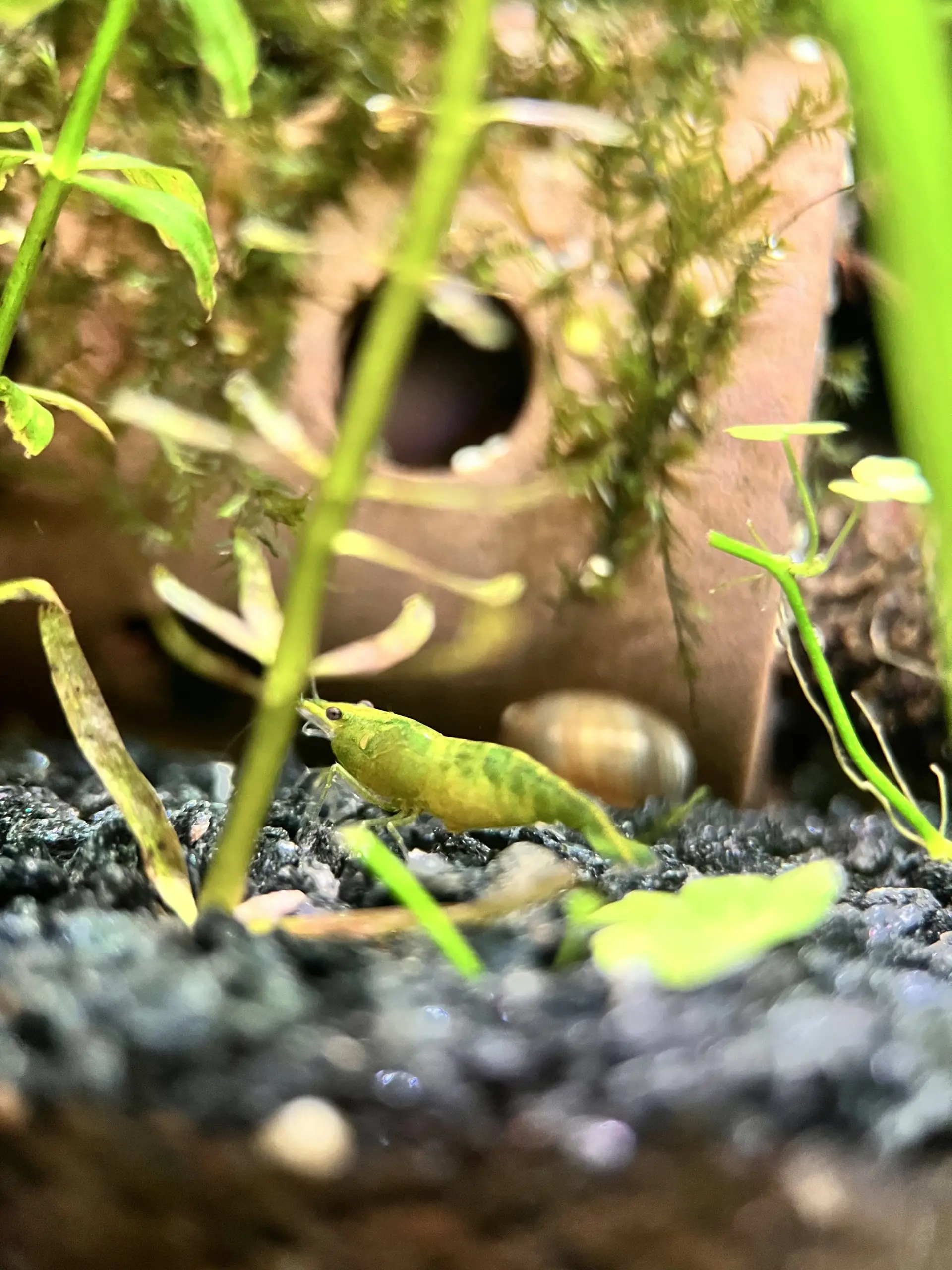 8 2.2025 | Do akvária přibyl beťák twintail, 4 orange sakura krevety v jiném odstínu než původní a malá neritinka. |