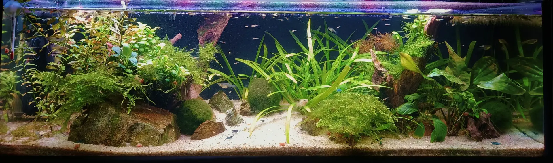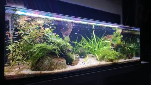 Moc pěkné akvárium, první, co mě napadlo, je uklizené akvárium :) . Takový krásný pořádek. A až se to rozroste bude to pecka. Chce to více kytiček :-) ;-) .