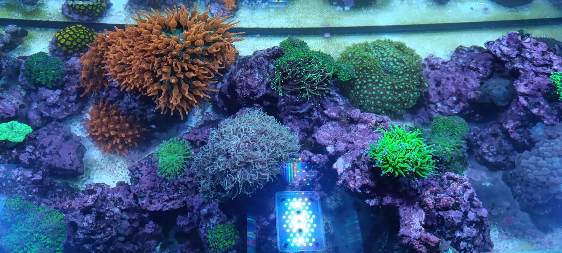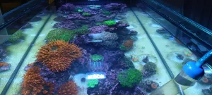 korále růst (dle spotřeby KH a Ca), celkově už to vypadá docela ok, kameny jsou