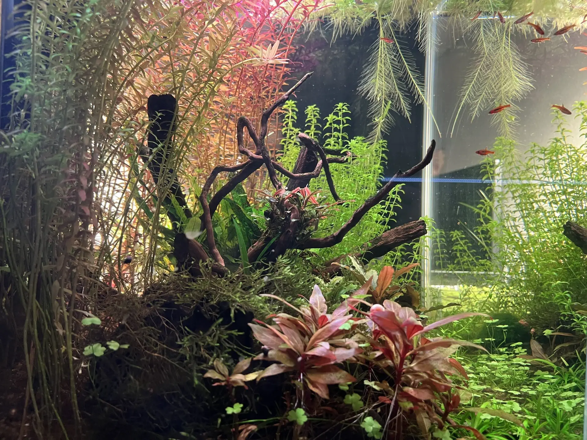 Obyvatelé: Neocaridina krevetky "Red Onyx", okružák - růžová varianta, levatka ostrá, kružník,razborka bornejská (12 ks), Otíci 3ks