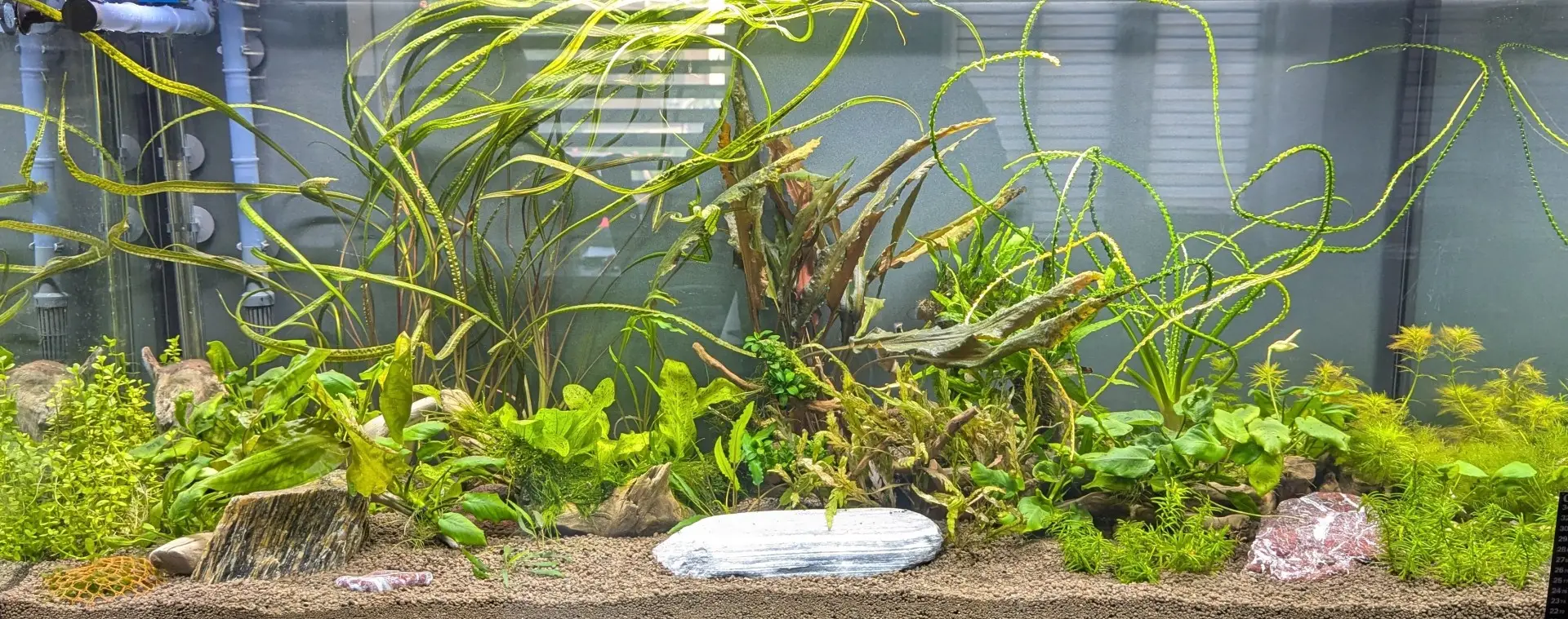 Popis: Jedno zanedbané akvárium, ve skomírajícími nemocnými rybami, řasou a sinicí, jenž původně zakládal Sklorex někdy v 9/2023. Dne 26.4.2025 bylo znovu založeno, bohužel opět s 1 den vypnutým filtrem a čekám tedy na obnovu rovnováhy po restartu. Zachráněné ryby jsou zatím bokem v menší dočasné nádržise vzduchováním, topítkem a denní výměnou části vody. Původní foto odráží nálezový stav druhý den po katastrofě v podobě několik týdnů vypnutého topítka (voda cca 19˚C) i filtru (rotor se netočil, překážela mu nějaká nečistota nebo úlomek feritu.