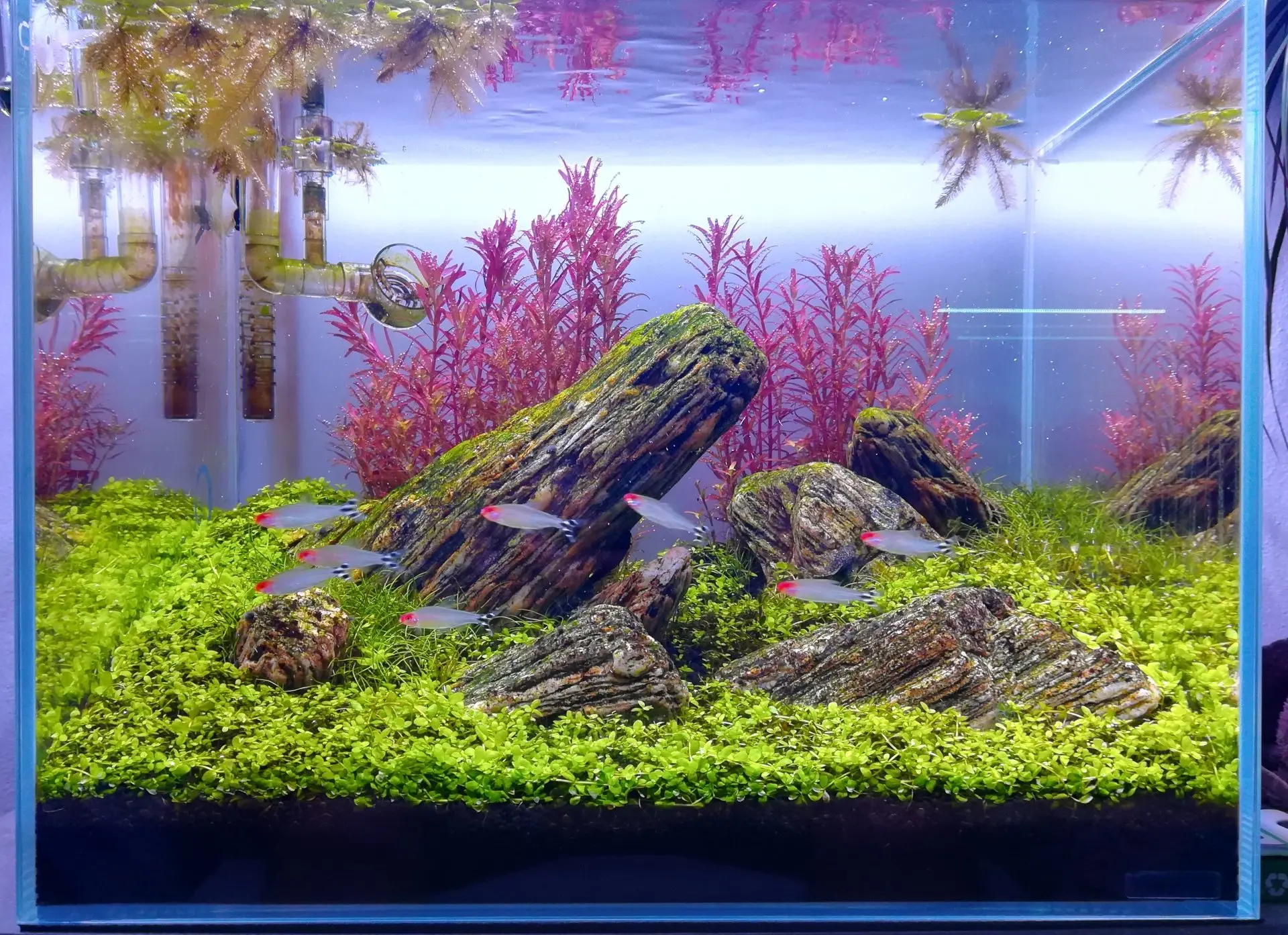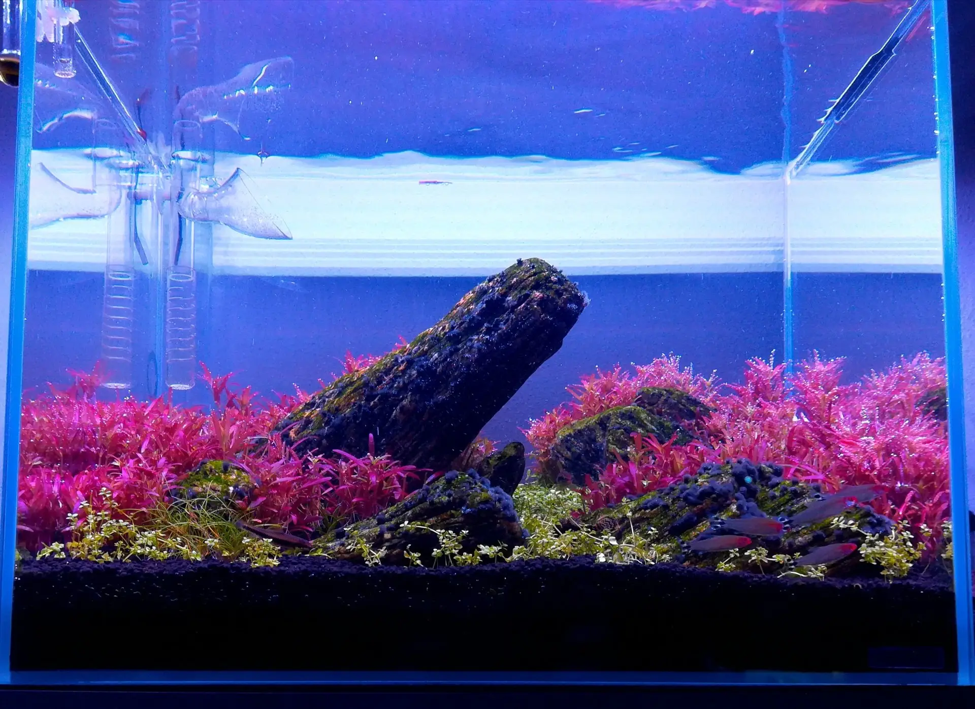 | 4 1.2026 | Výměna vody Očista skla Zastřihnutí Rotaly Štětička po aplikaci vřelé vody hojně na ústupu, nově vyrostou jsem nenašel MC v přední části akvária se pozbíralo a začíná růst Foto po údržbě |
