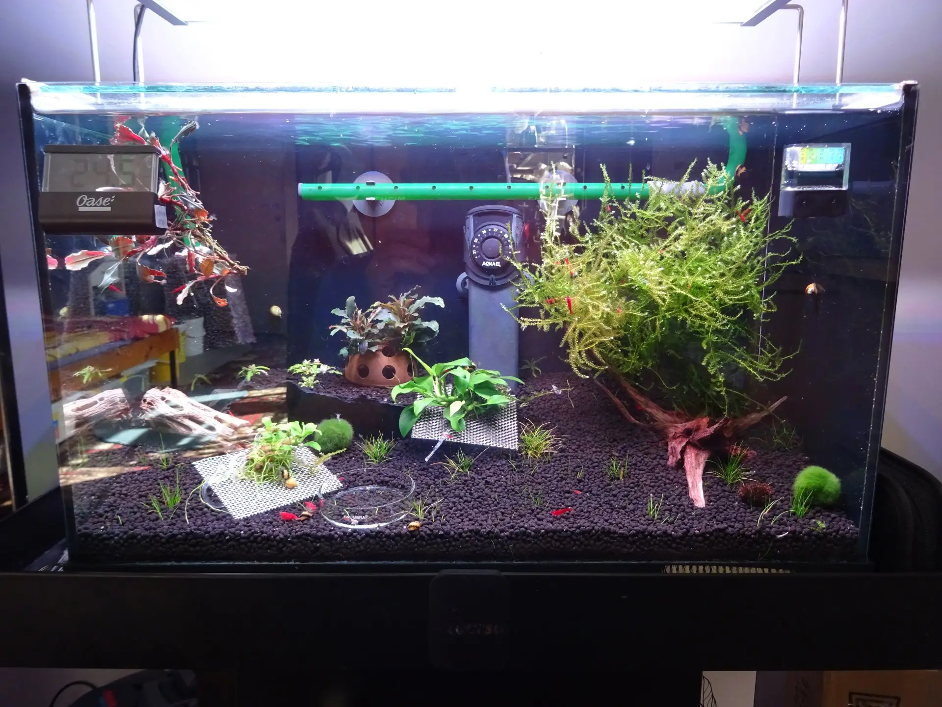 Ahoj, dobrý začátek. Až to zaroste to bahničkou, tak to bude vypadat moc pěkně. Odstranil bych ale ty mřížky a anubias s buckou raději umístil na kořen nebo jinou dekoraci. Zbytečně to tam ruší... Ať se daří ahoj