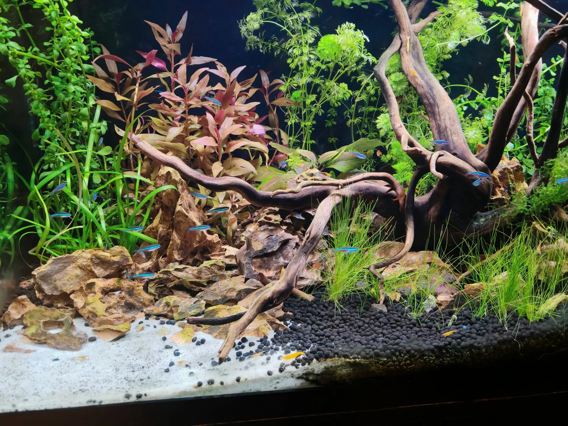 14 9.2025 | Ani se to nechce psát ale pro budoucí poučení - většina ryb během prvních dní zemřela - přidáno moc ryb naráz? Špatná aklimatizace? Stres z cesty? Nevím každopádně 5ks neonek, 6,7 teter a 1 otik to dali. Výměna vody 1 /3 vody každý den jako první pomoc. Seachem a guard a seachem stability |