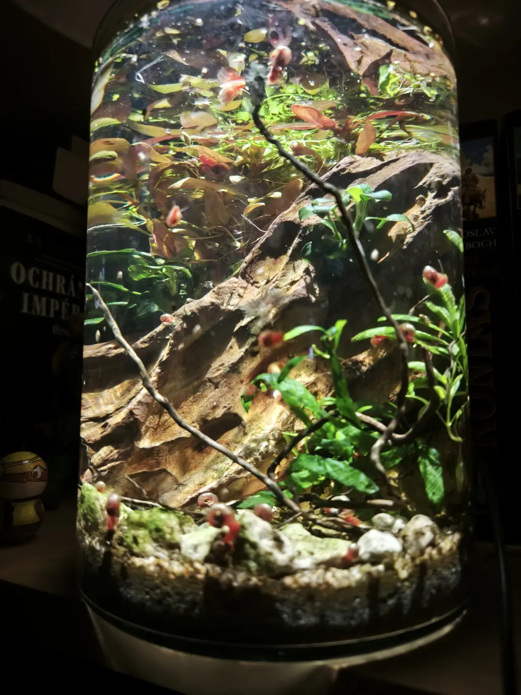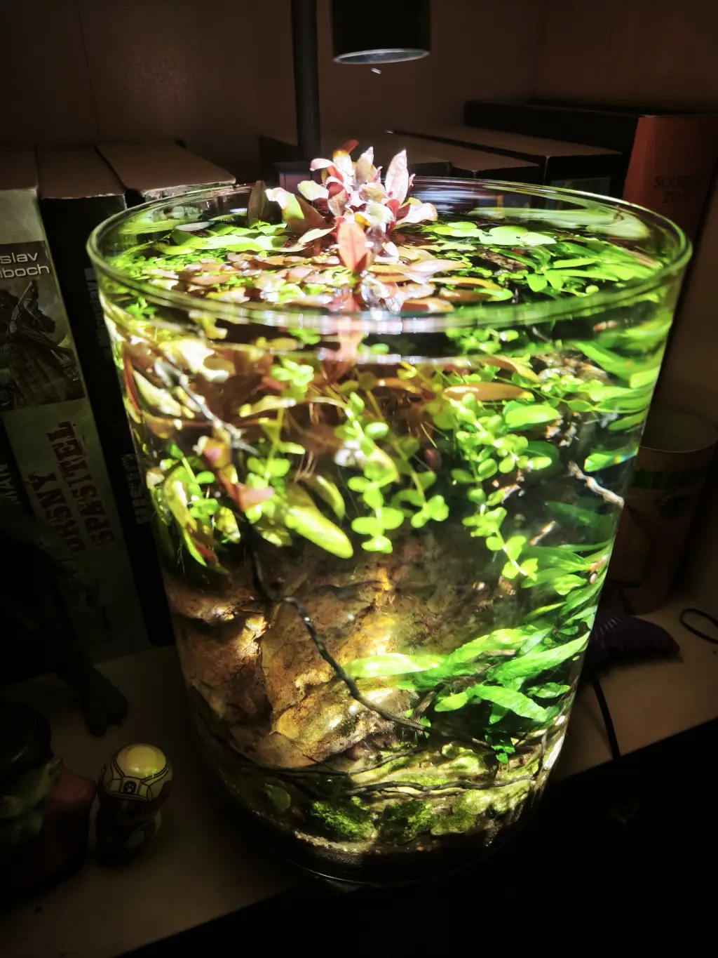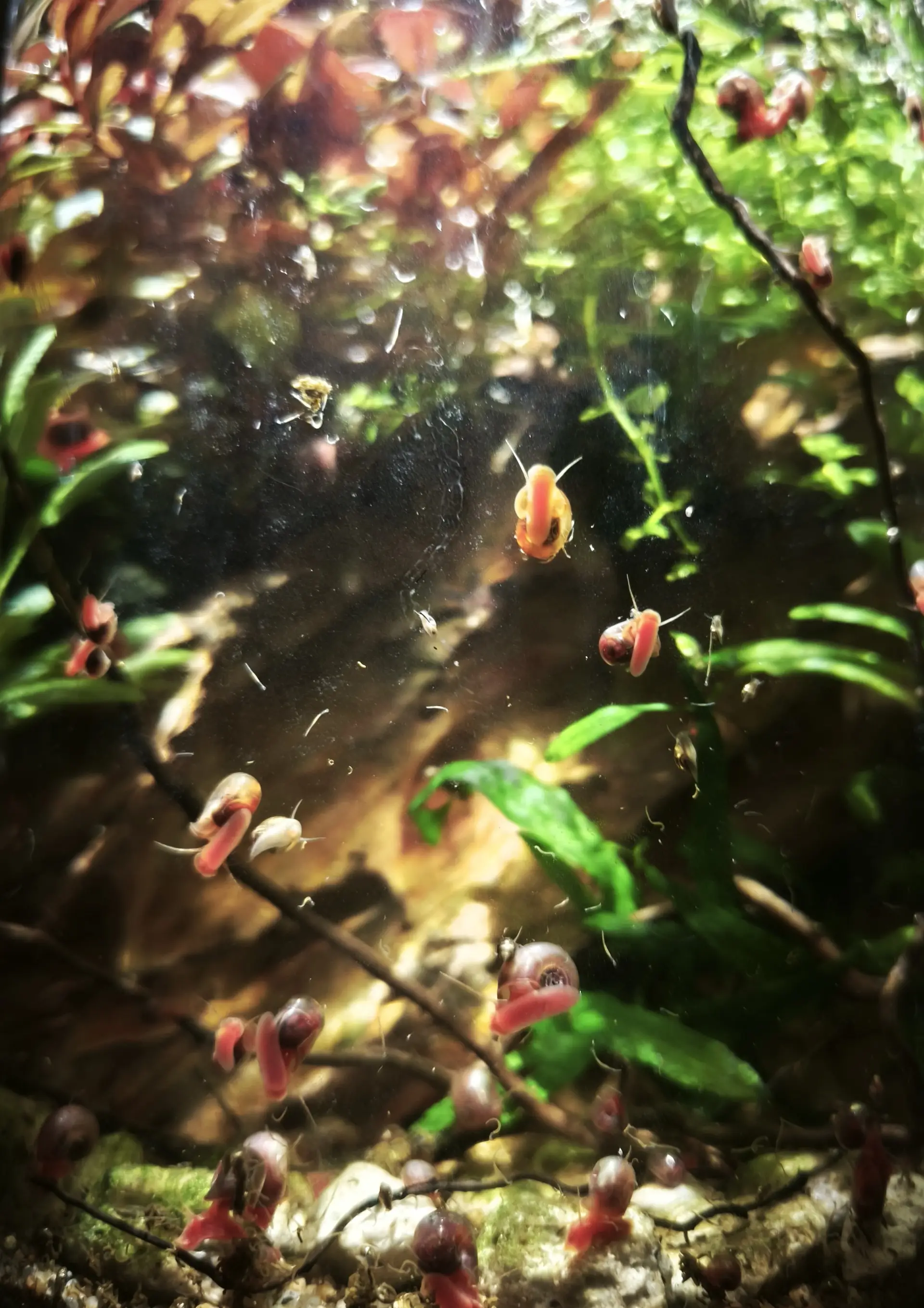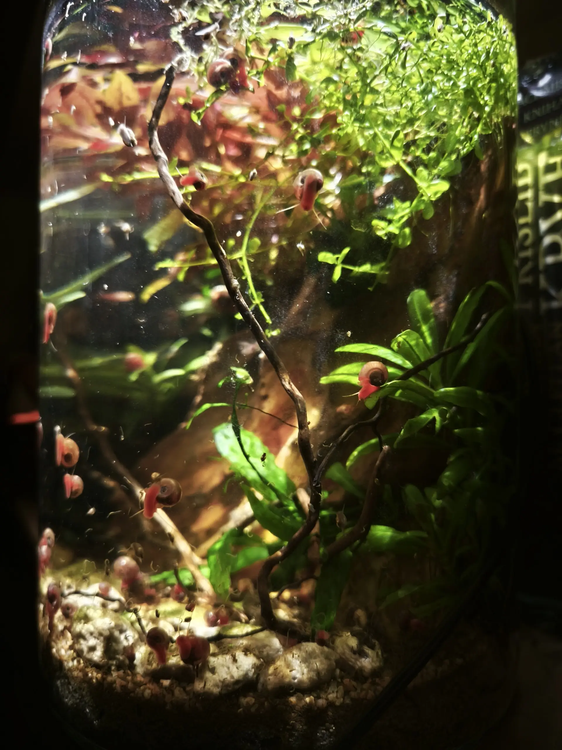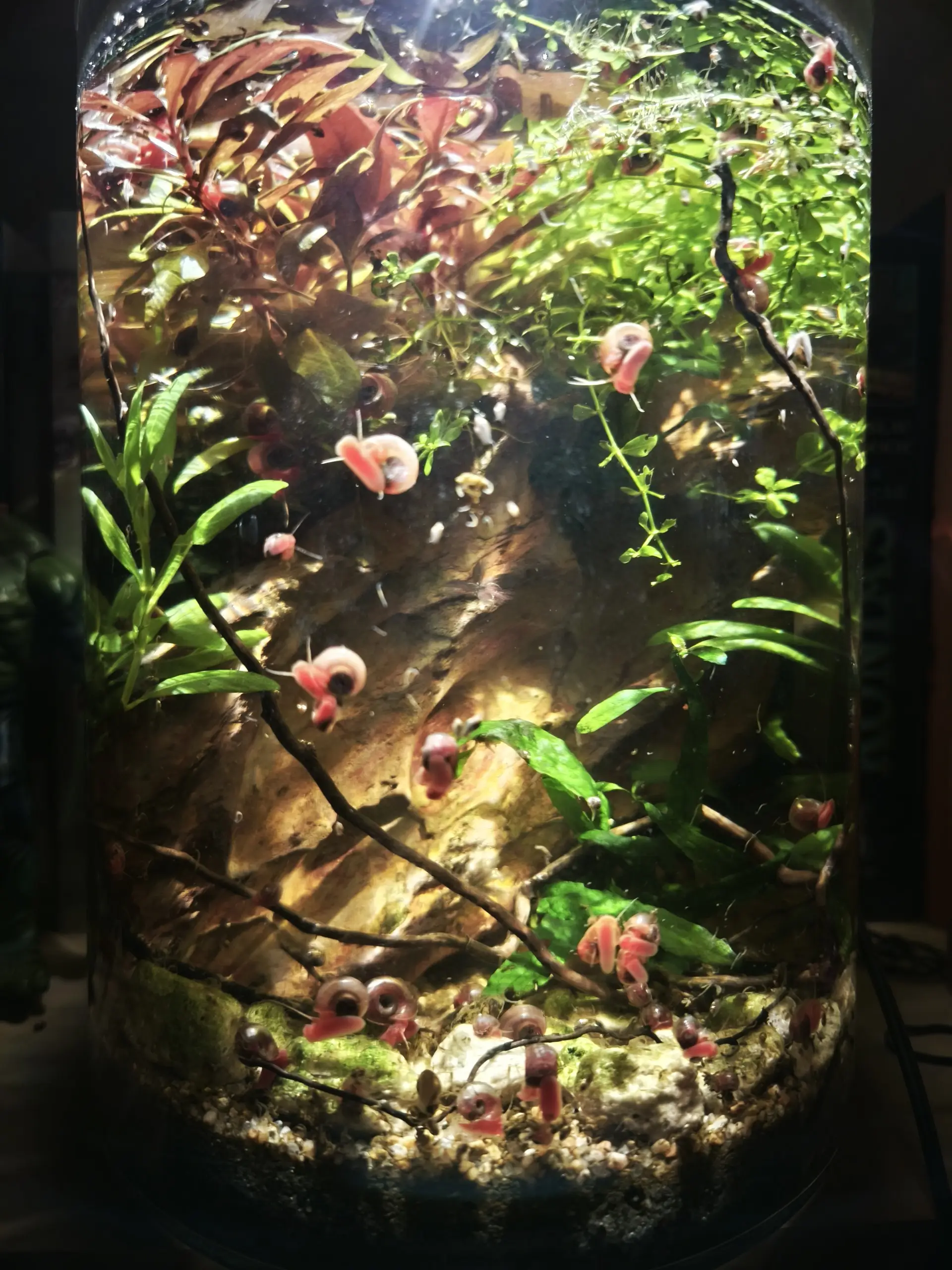 Šnečí farmička je pojata jako low-tech akvárium bez techniky pouze se světlem. Kromě chovu okružáků sem chci taky na zkoušku umisťovat různé druhy menších rostlin a testovat, jak jim to bez ostatní techniky půjde...
