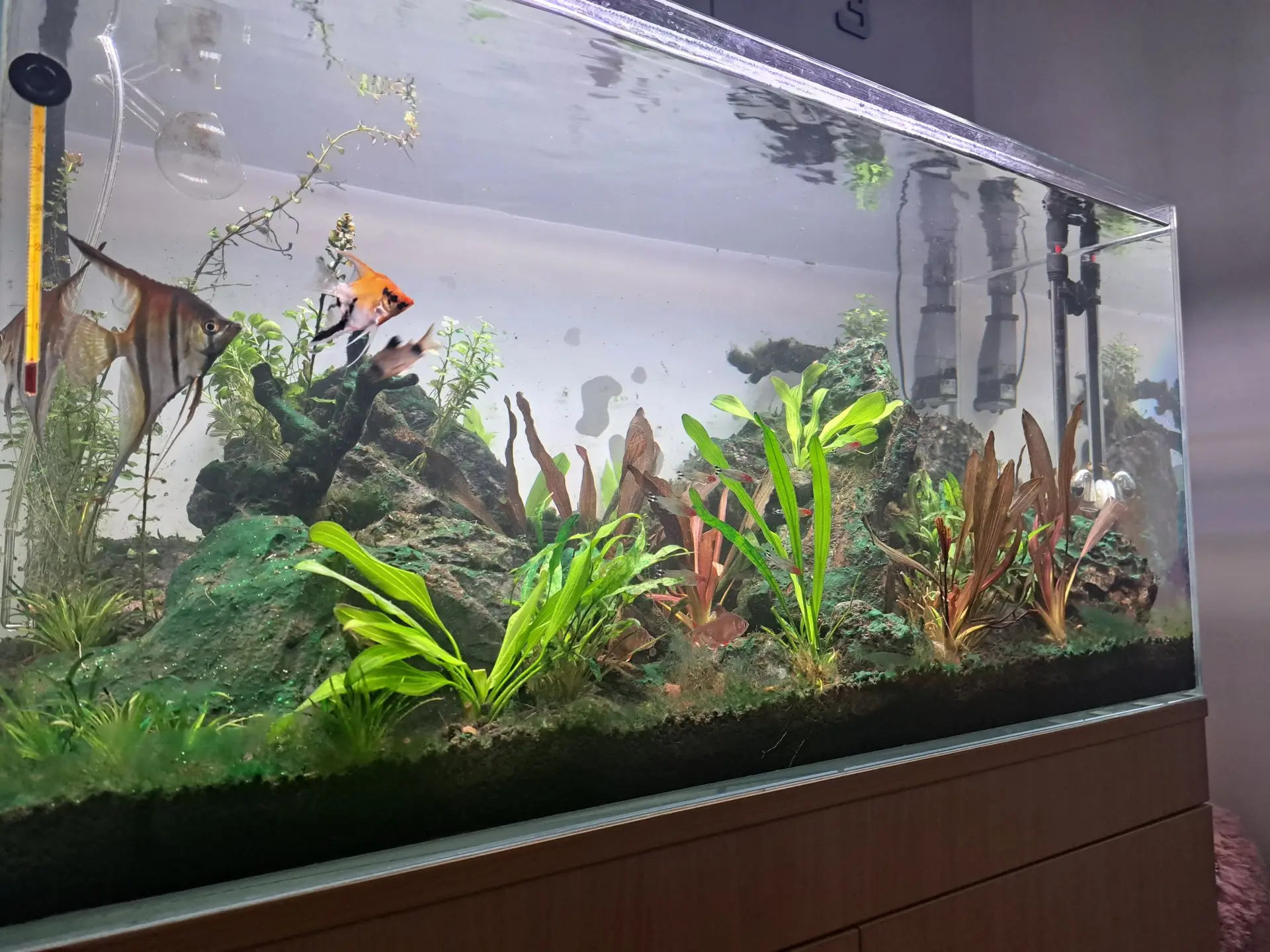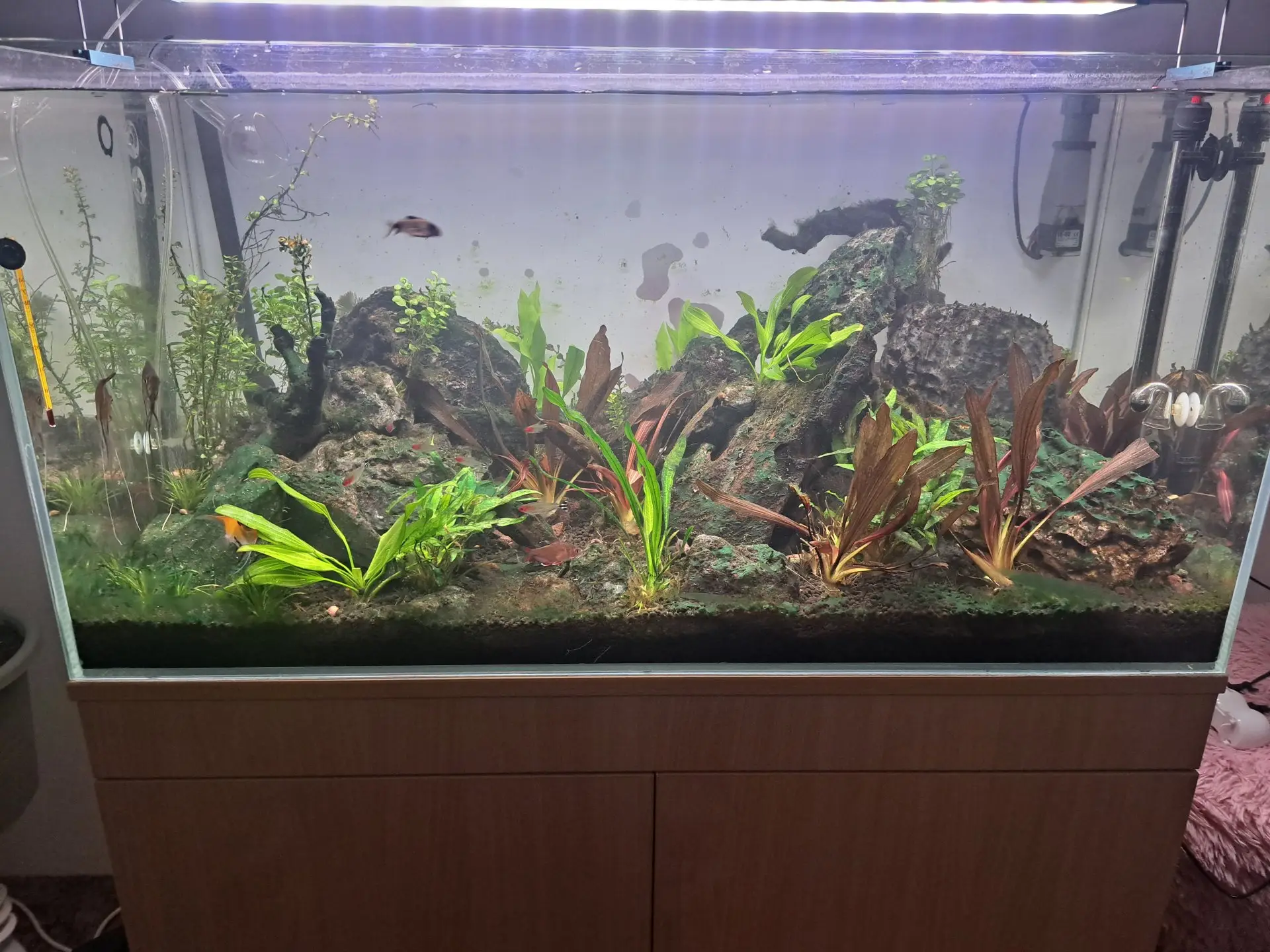 Pěkné akvárium, hardscape super, koukám že lehký boj s řasou, tak ať se daří palec