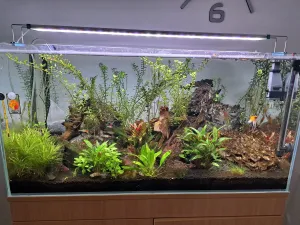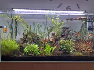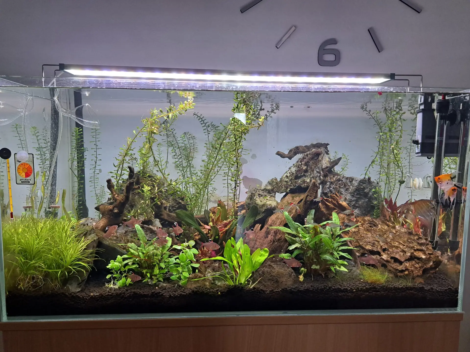 Údržba: 1x za 2 týdny čistění skel, odsávání dna a 40 litrů vody z reverzní osmózy