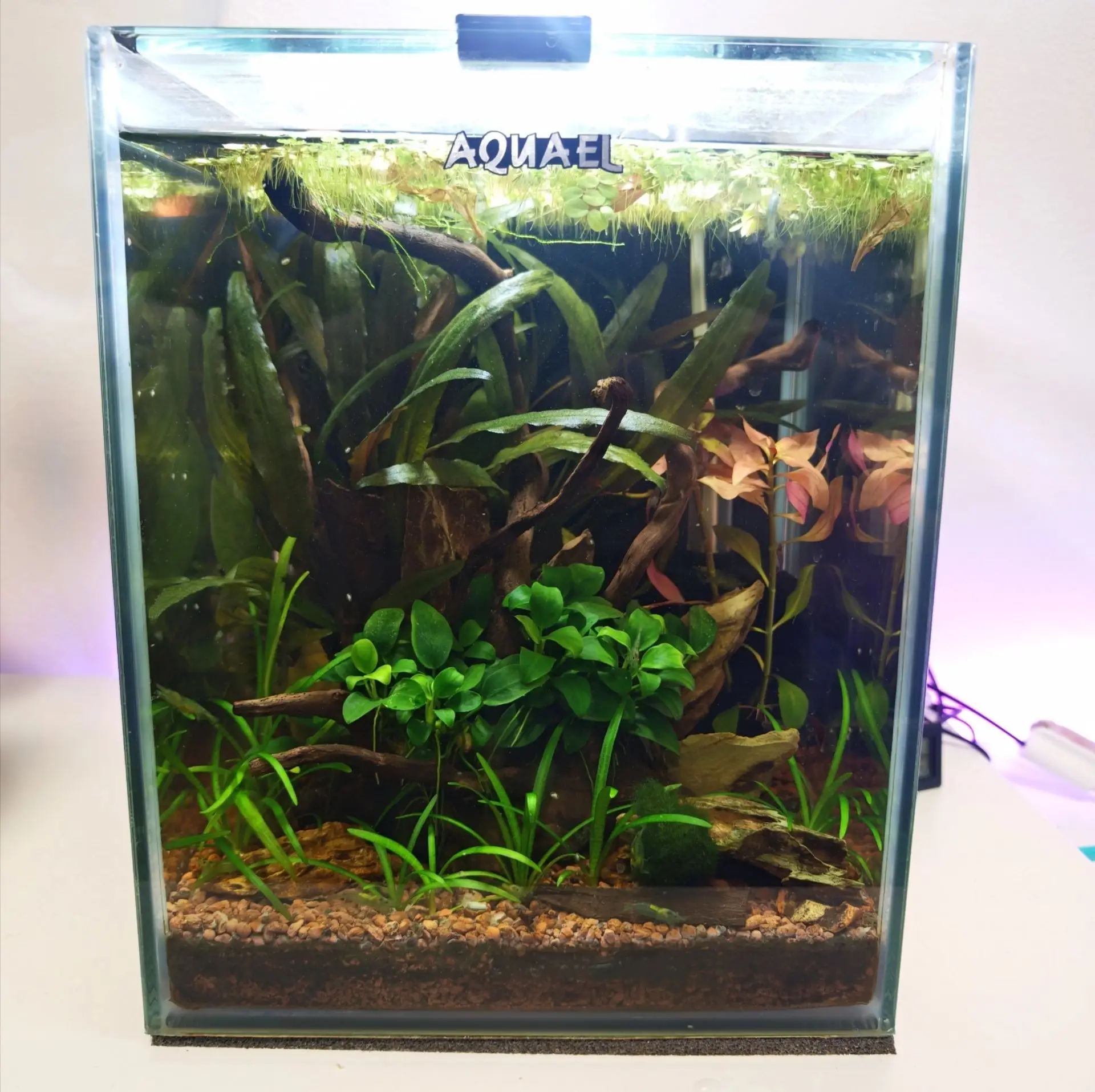 Popis: Akvárium som už kedysi mala a časom mi to začalo chýbať. Vždy som chcela skúsiť krevetky, tak som si urobila radosť – k počítaču sa mi to hodí aj ako dekorácia a zároveň si plním sen. Vďaka podpore a radám môjho najlepšieho kamaráta (a nadšeného akvaristu) sa mi to celé konečne podarilo zrealizovať.