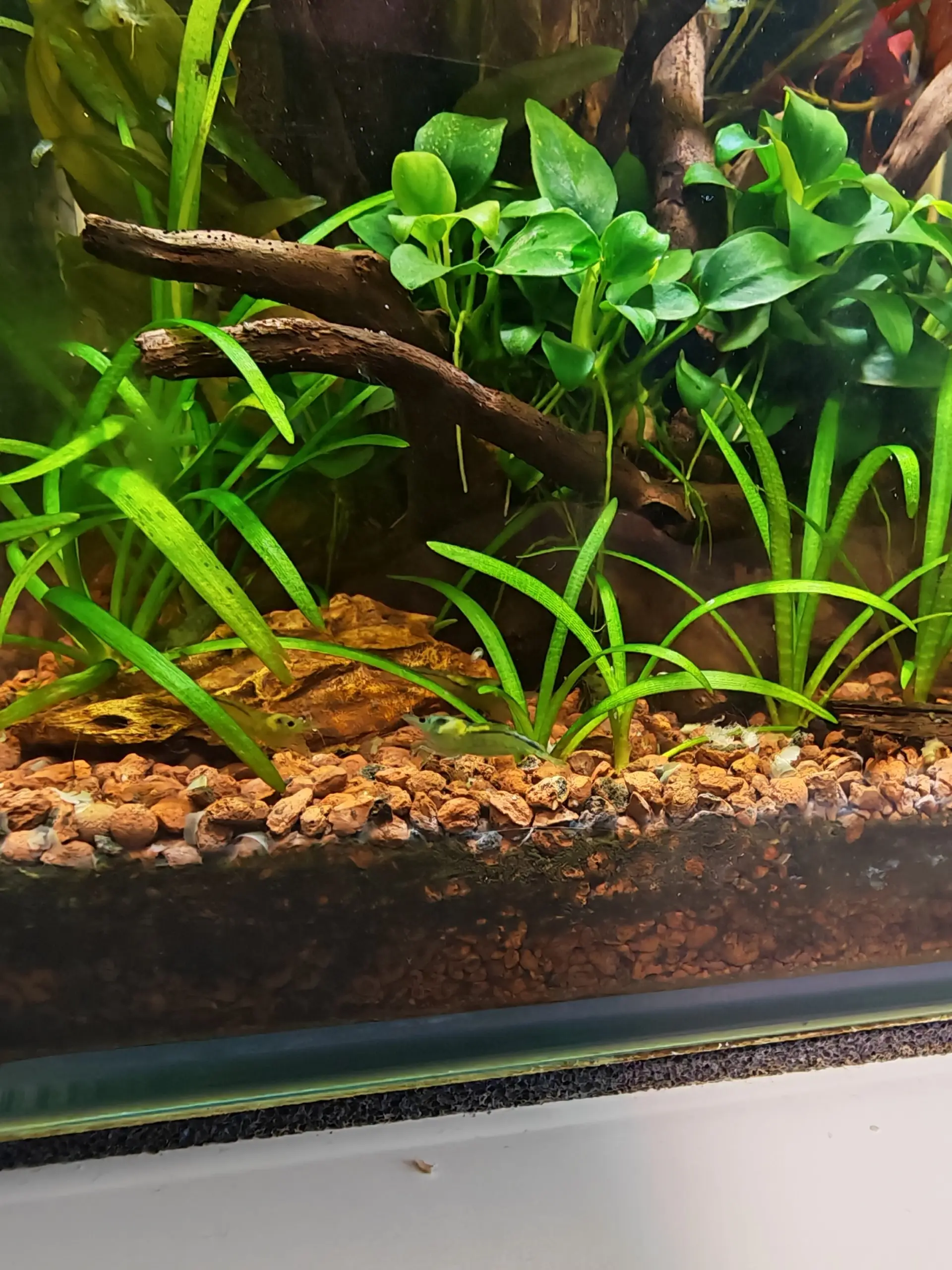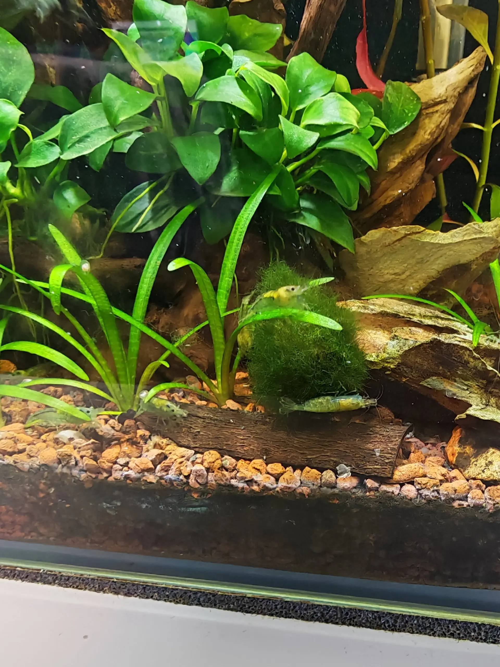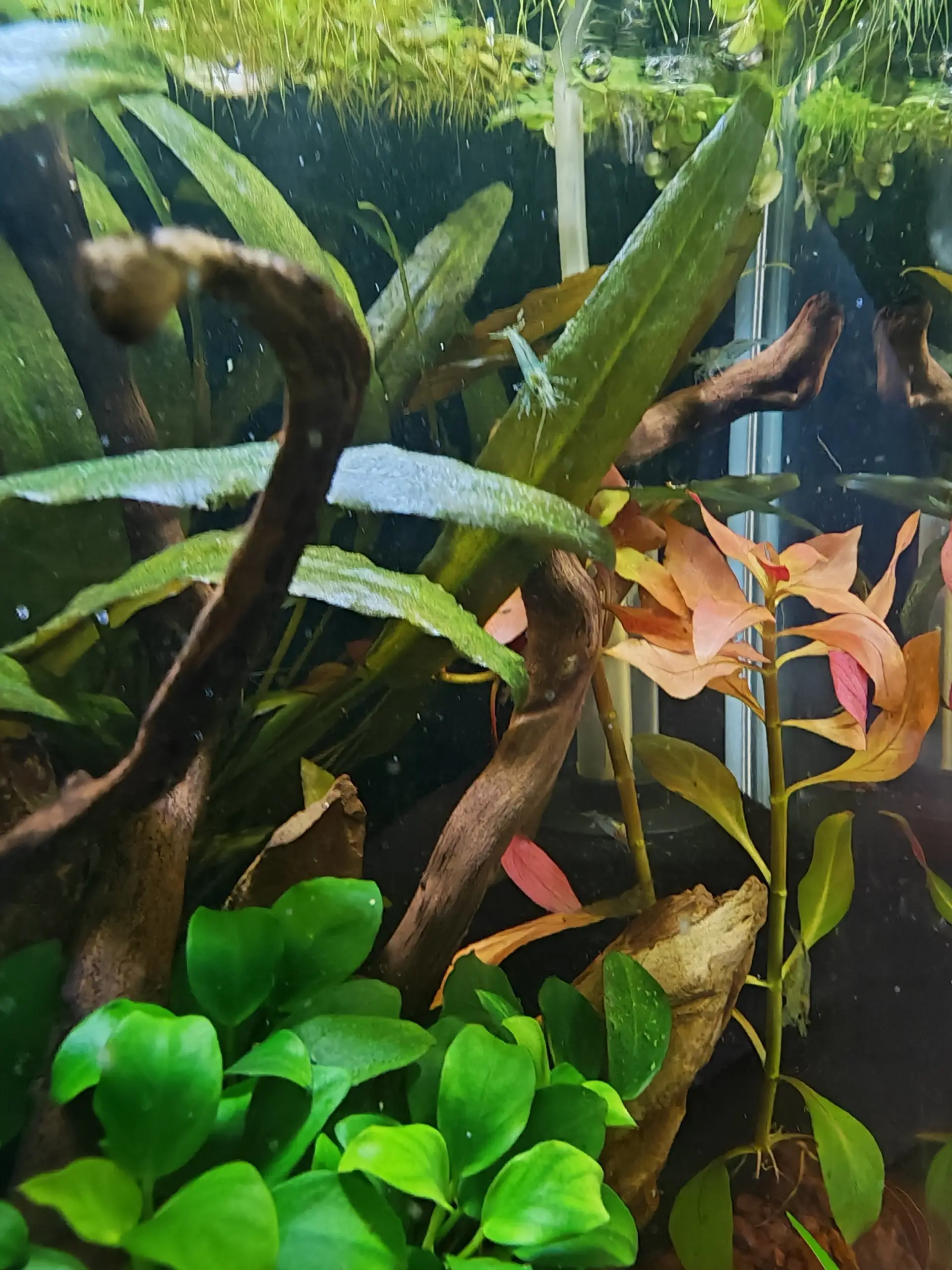 Dnes konečne prišli do akvária drobné Neocardinia Blue Jelly, boli vystresované z cesty tak som ich nechala sa rozkukať. Je úžasné ich pozorovať ako sa pasú na dekoráciach! Som zvedavá, ako sa budú množiť a rásť, dúfam že bude všetk ov poriadku a budú sa mať skvelo :).