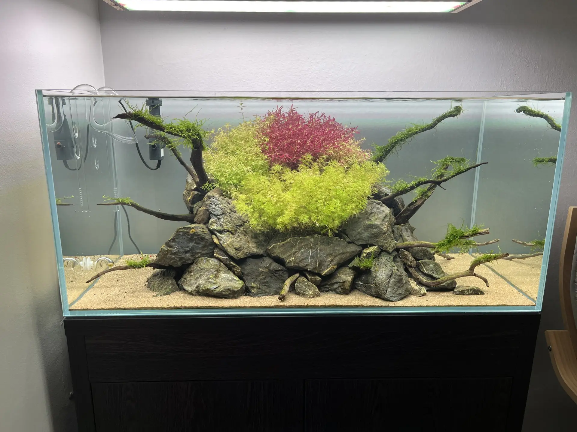 Už minule se dark start osvědčil a vzhledem k tomu, že 30kg seiryu stone bylo málo a ani lávové kameny a kameny z místní přírody nestačily, netlačil jsem na start a snažil se dotáhnout hardscape ke spokojennosti...