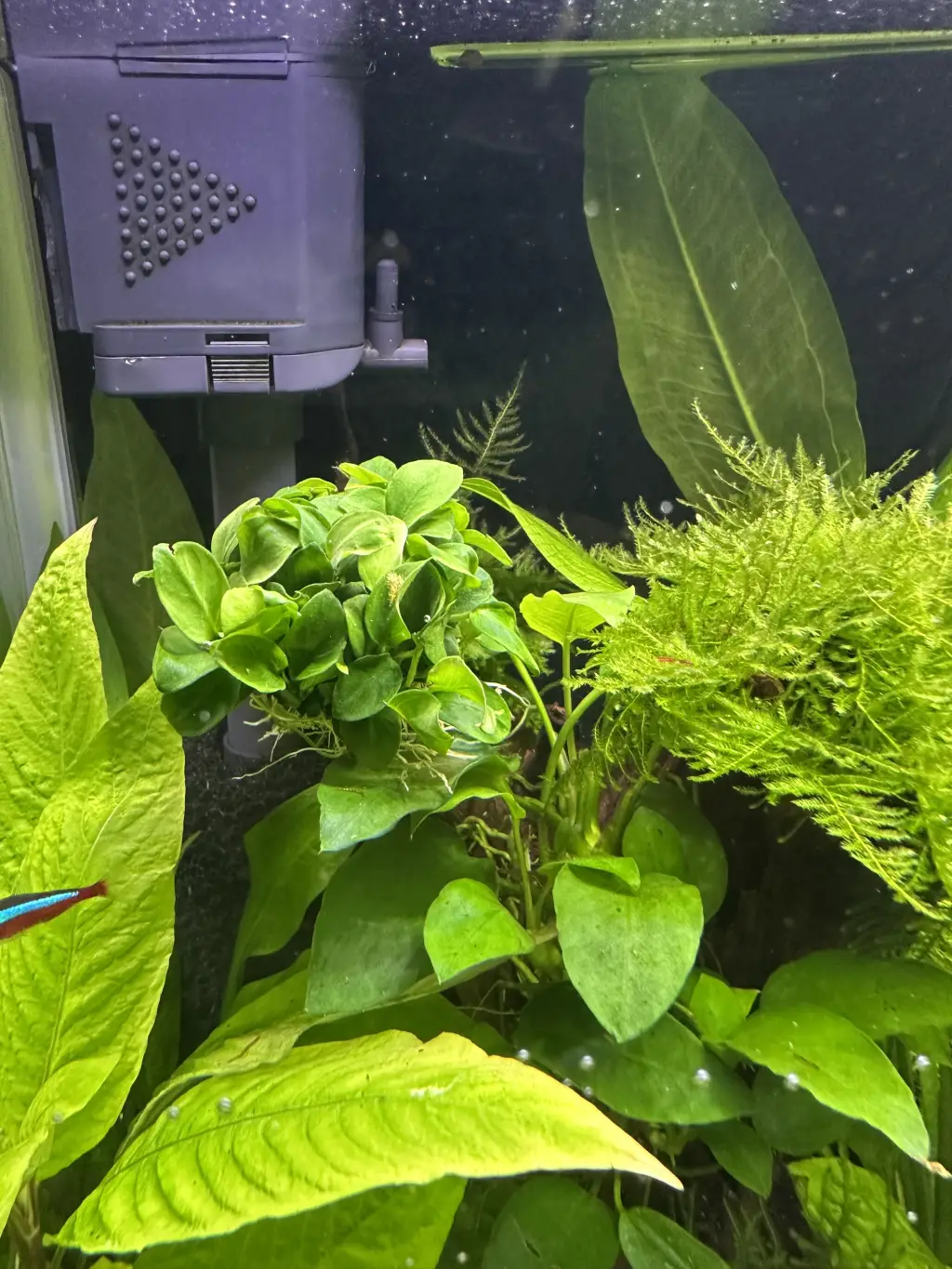 Vkusně zařízené akvárko palec Dal bych tam ale víc kytek. Ten levý zadní roh si vyloženě říká o dosazení nějaké rychleji rostoucí stonkovky. Ať vám to prosperuje ahoj
