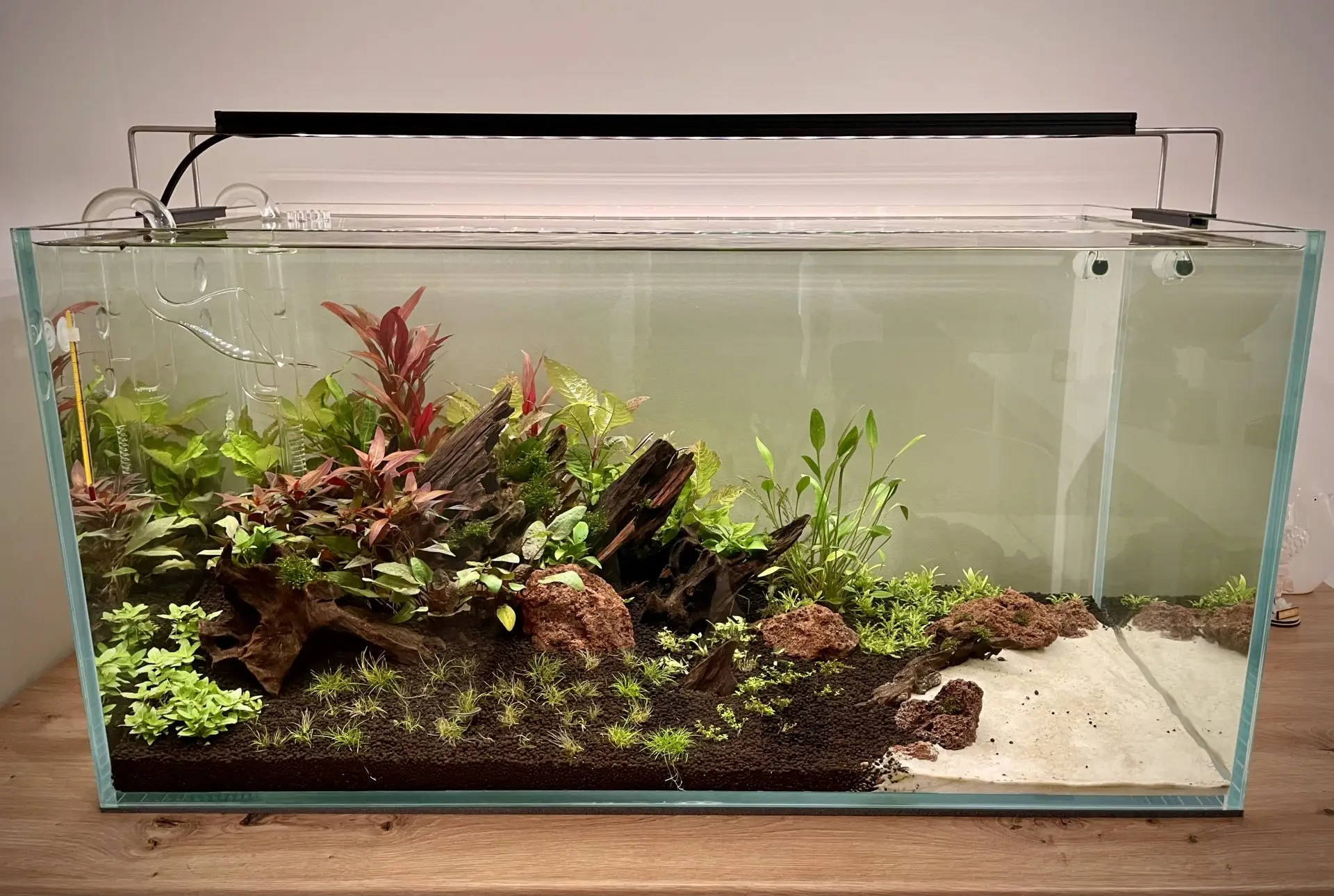 | 14 10.2025 | Dnes byl založen celý layout akvária. Všechny rostliny byly zasazeny podle předem