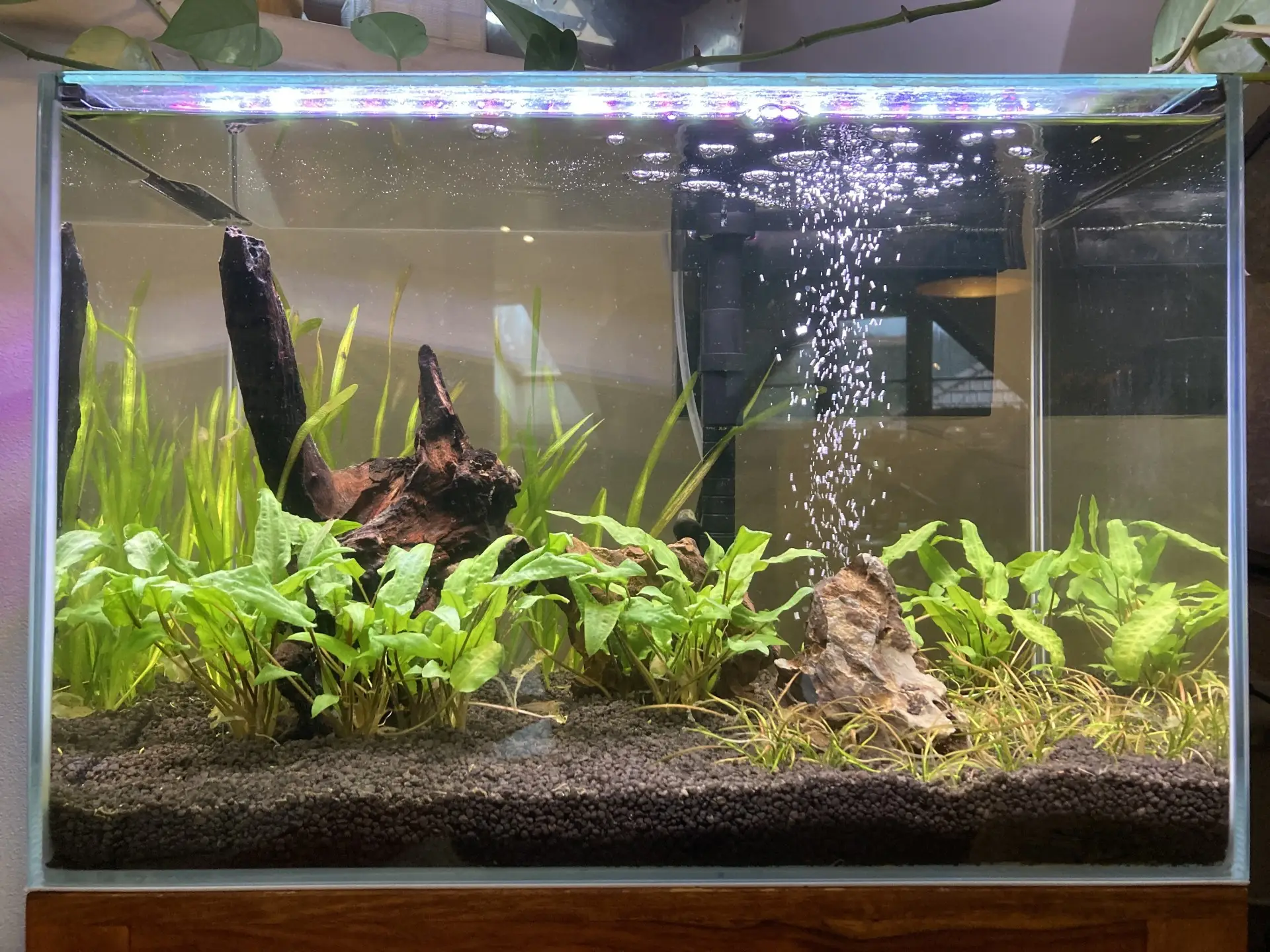 | 11 11.2025 | úmrtí jedné krevetky, nejspíš po nasátí do filtru, ležela pod filtrem vejpůl. NO2 0, ostatní krevetky se mají fajn. |