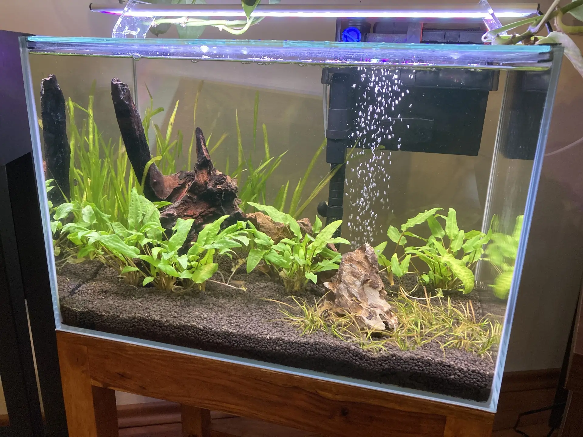 | 16 11.2025 | Výměna 1/3 vody. Před výměnou kontrola NO3 (cca 10) a NO2 (0) - cyklus nejspíš zajetý. Krevetky spásají poslední zbytky biofilmu na kořeni. |