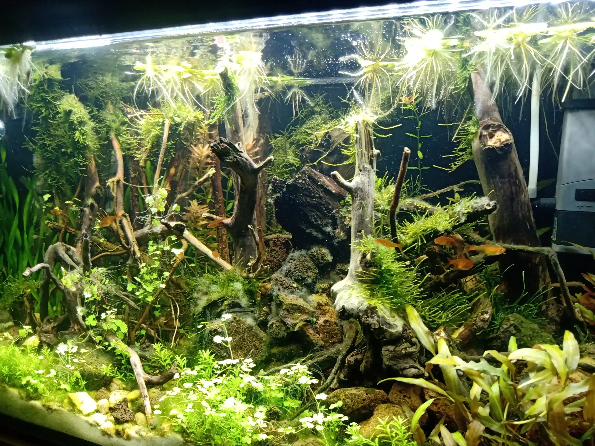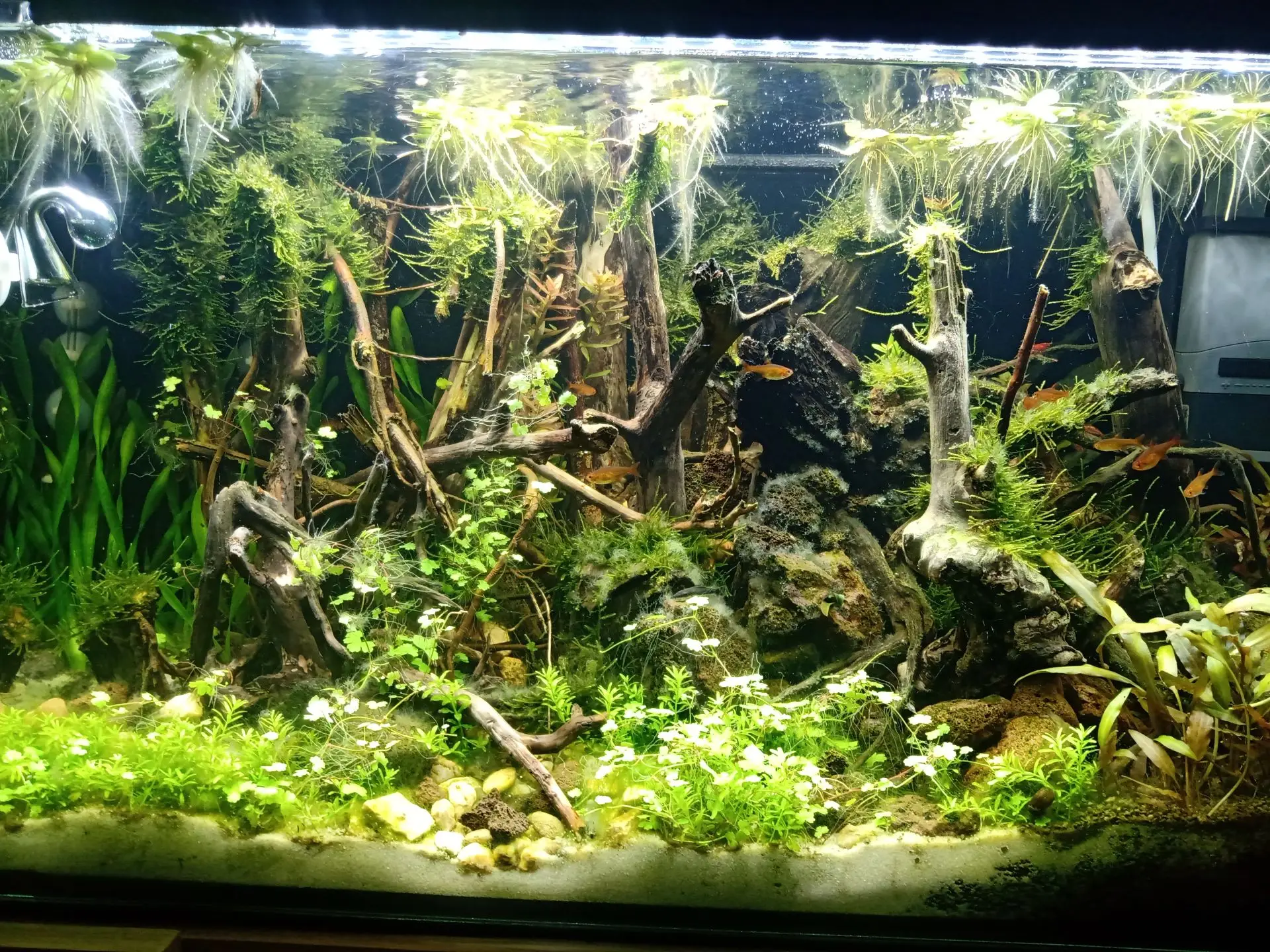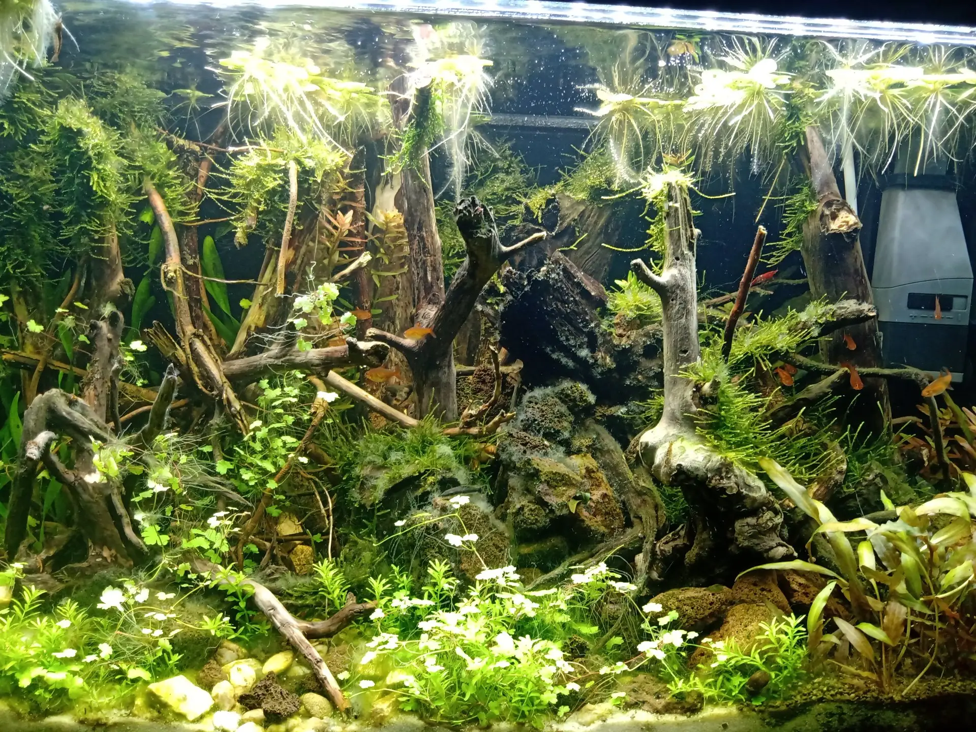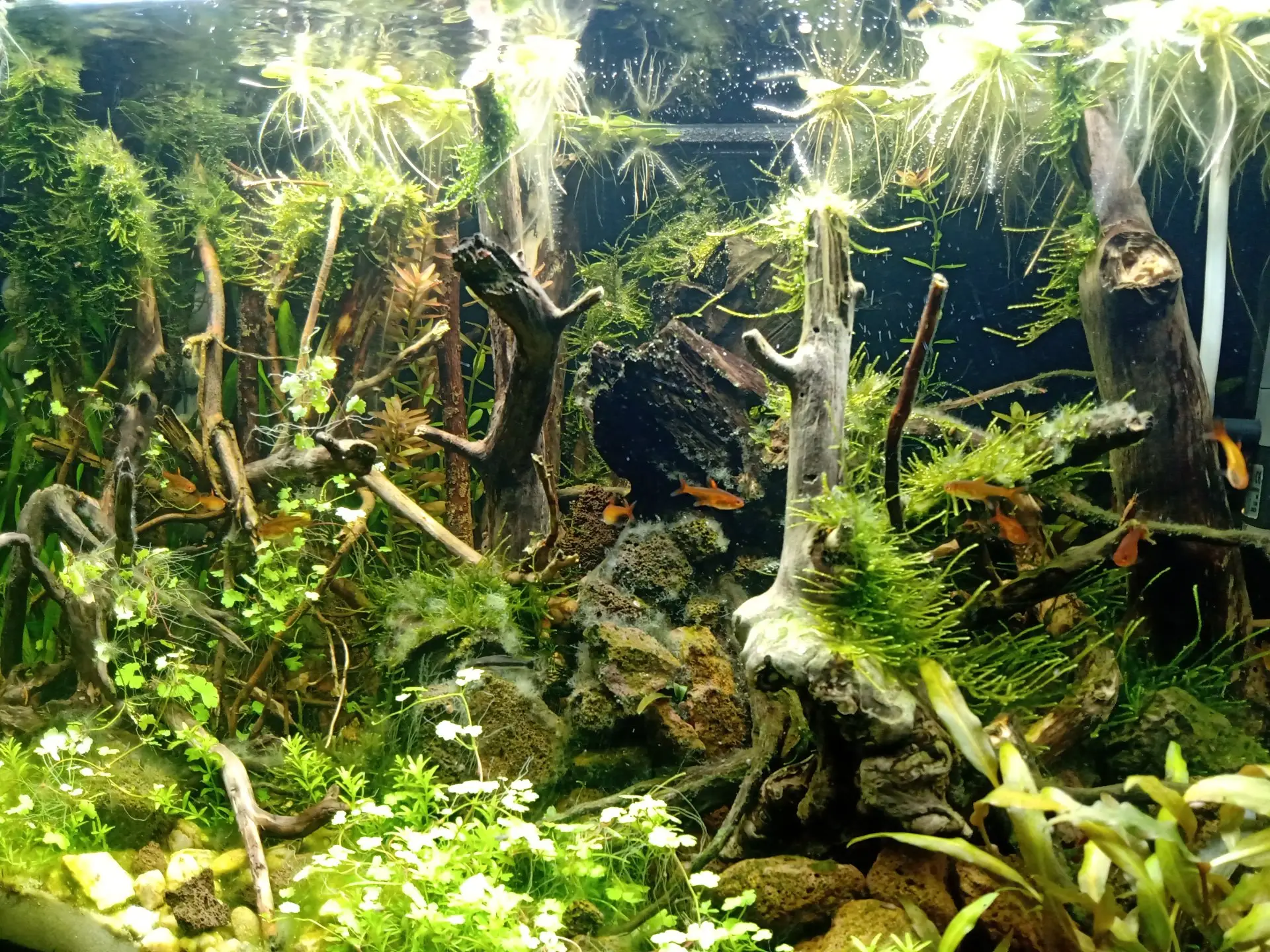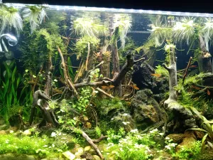 Popis: Nanovo založené akvárium/v zábehu