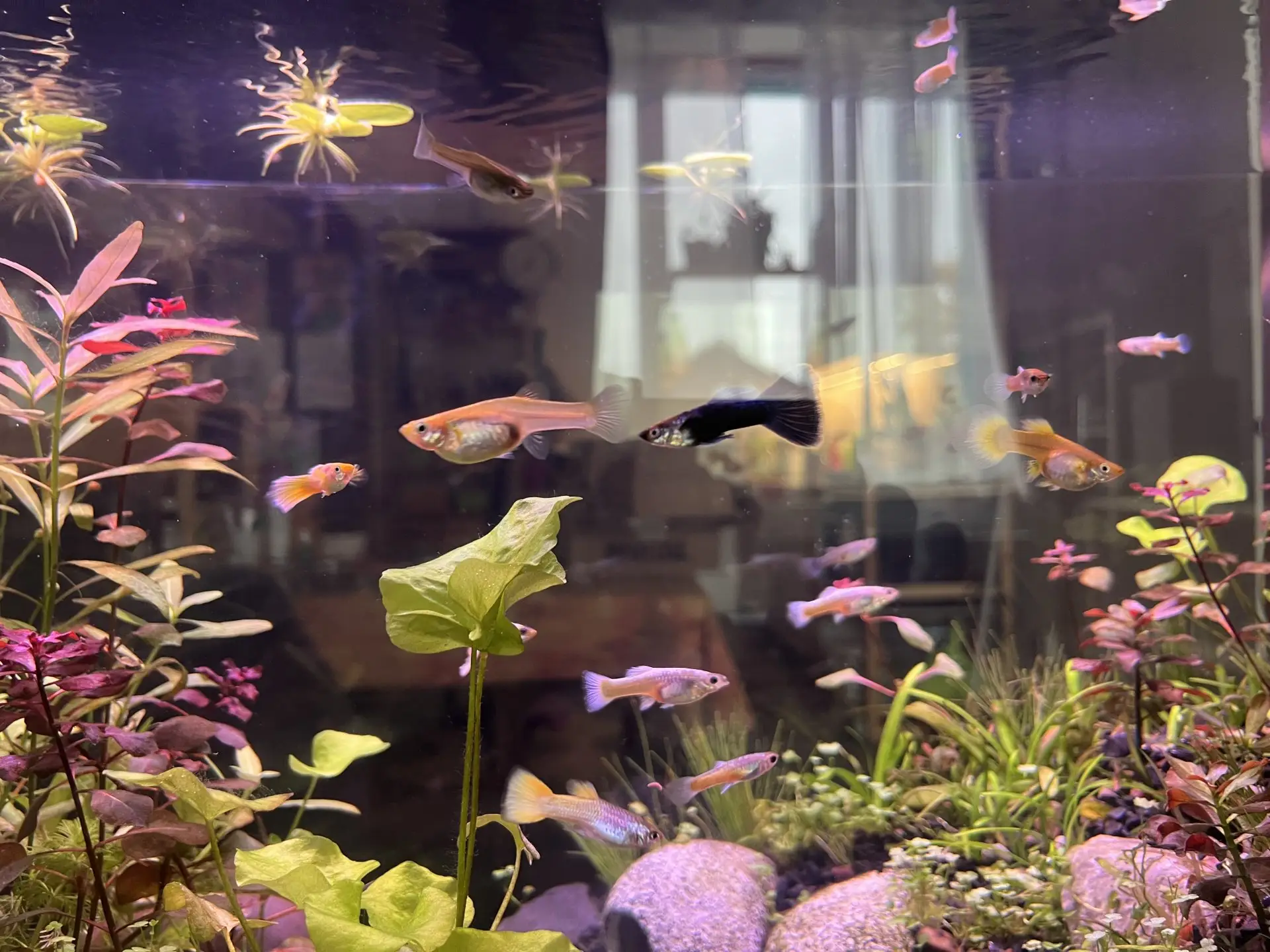 poecilia reticulata 2 samci, 5 samic, 4 mimina