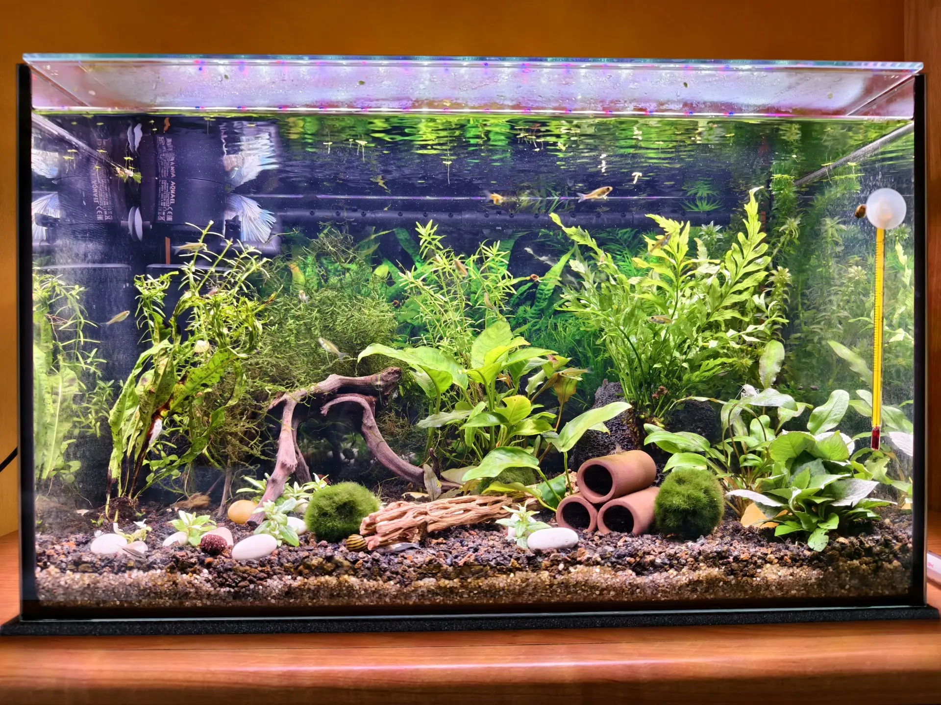 Popis: Malé akvárium pro Betu z kterého jsme nakonec udělali společenské s rybičkami a krevetami.