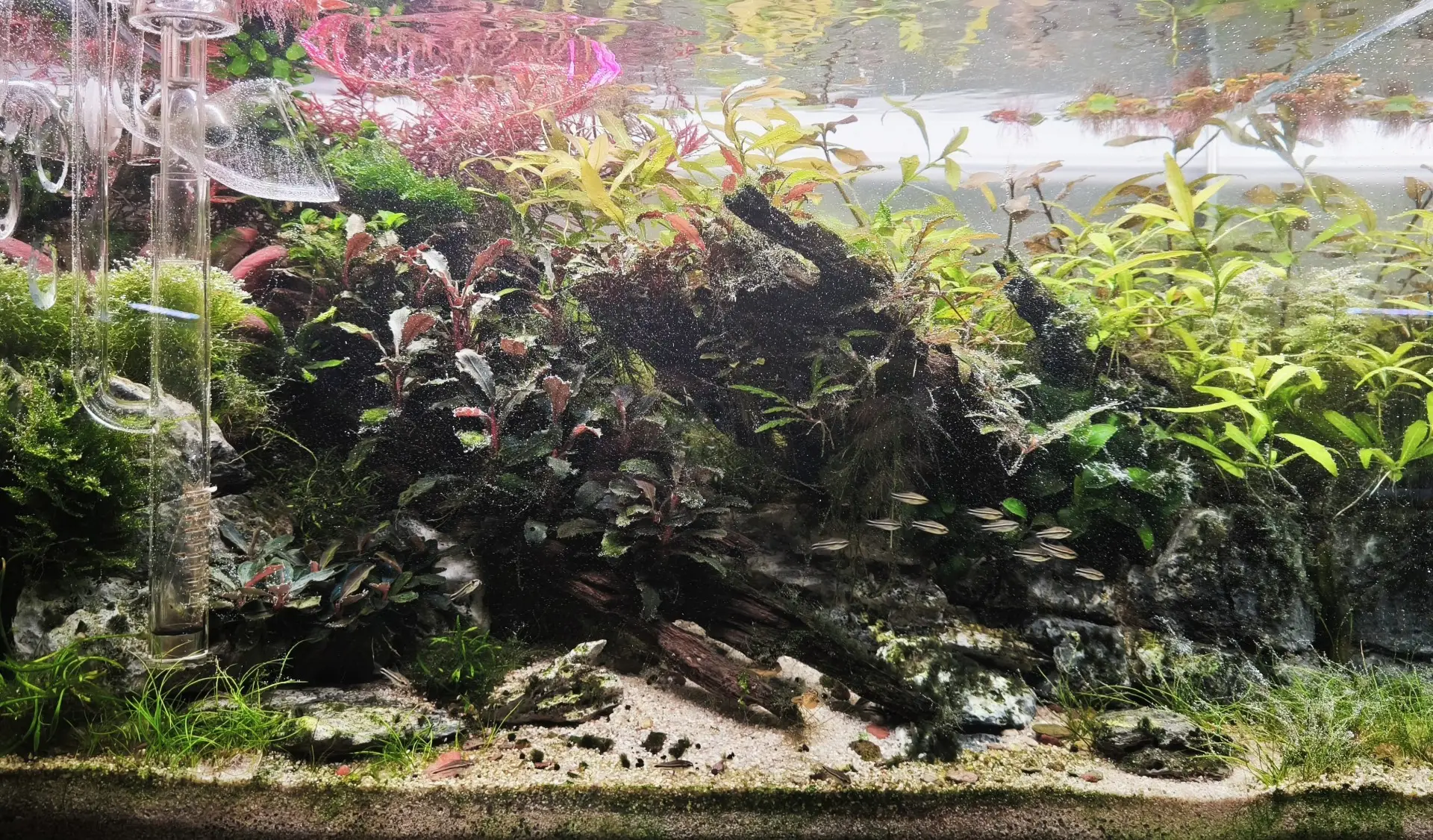 vypadá to spíš jako nějaký druh Ludwigie. Opět jsem byl nucen vyčistit i zanesené lily pipes. TDS vody po výměně 144 ppm. |