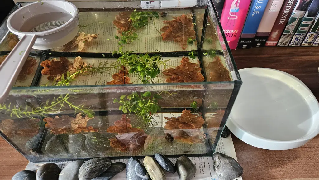 | 3 3.2026 | Rozpoznána choroba Ellobiopsidae (tak ne je to Cladogonium ogishimae) u 3 krevet původně zaměněná za vajíčka. Zatím jsem dvě přesunul do karantény a do akvária přidal dubový list navíc. |