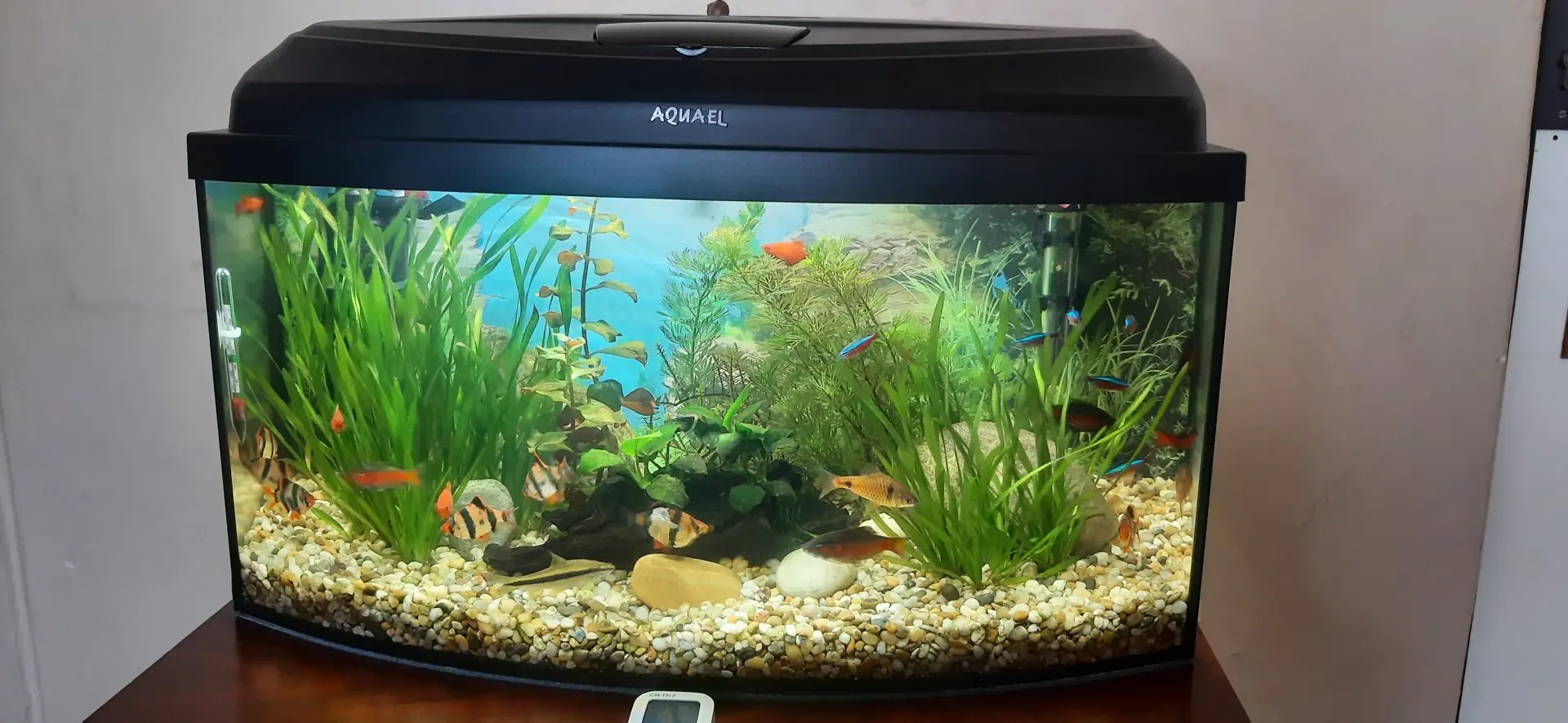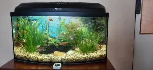 Popis: Společenské akváriu s vypouklou přední stěnou