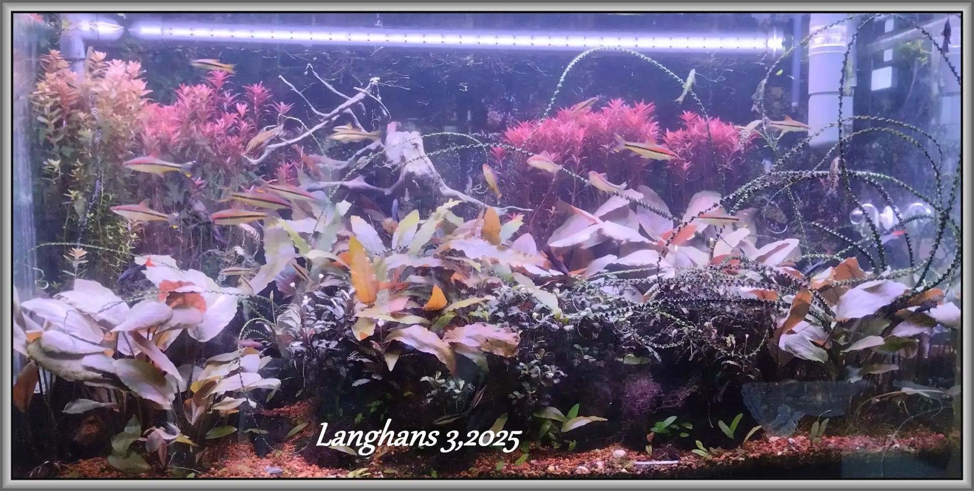 31 7.2024 | Postupně prostříhávám rostlinstvo a kosmeticky upravuji rozložení po nádrži. Začal jsem doplňovat nové osazenstvo. Prozatím 8x Mřenka pakistánská - Botia lohachata a 5x Parmička červenoocasá - Epalzeorhynchos bicolor. |