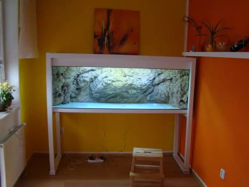 Pozadí: 3D pozadí vlastní výroby-Extrudovaný polistiren + Montažní pěna + Balakryl + Epoxi-pryskyřice + Písek (vypadá efektně-akorád škoda že vzala tolik oběmu-odhadem tak třetinu AQ :-C )