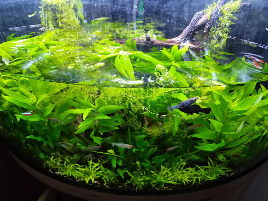 Grácie 2 | Generální úklid, očištění všech povrchů od řas a sinice, otrhání špatných listů, odsátí bordelu, výměna 2/3 vody a stažení světla na 54%. V malém výměna 1/2 vody a otření krycích skel. |