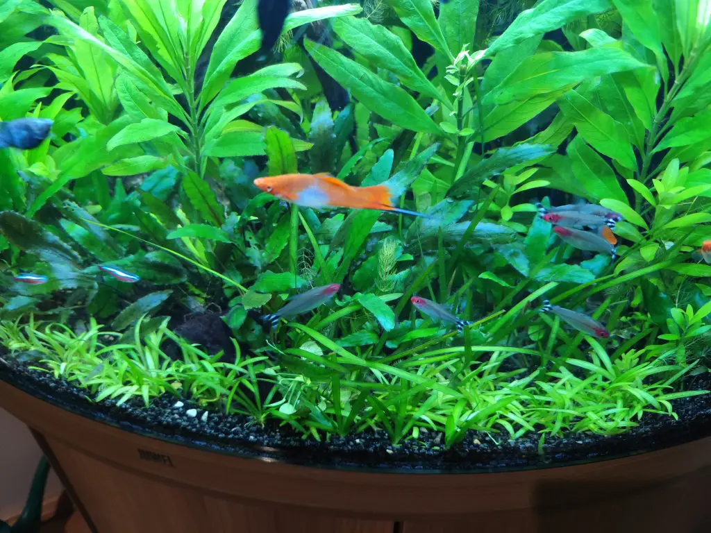 138 litrů | Tady se uplatnily všechny stonky ludwigie inclinaty. (možná i mexico?) Akvárko má úplně jinou atmosféru. |