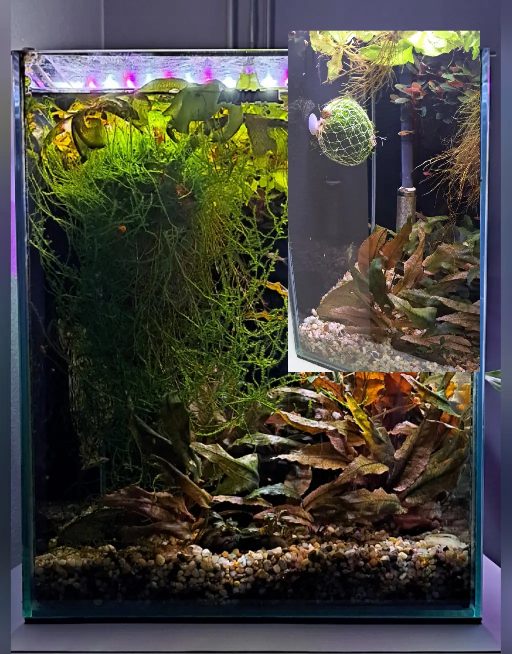 První menší - Valčino akvárium | Zároveň jsem ubral a poupravi mech vrostly do Obšíráku |