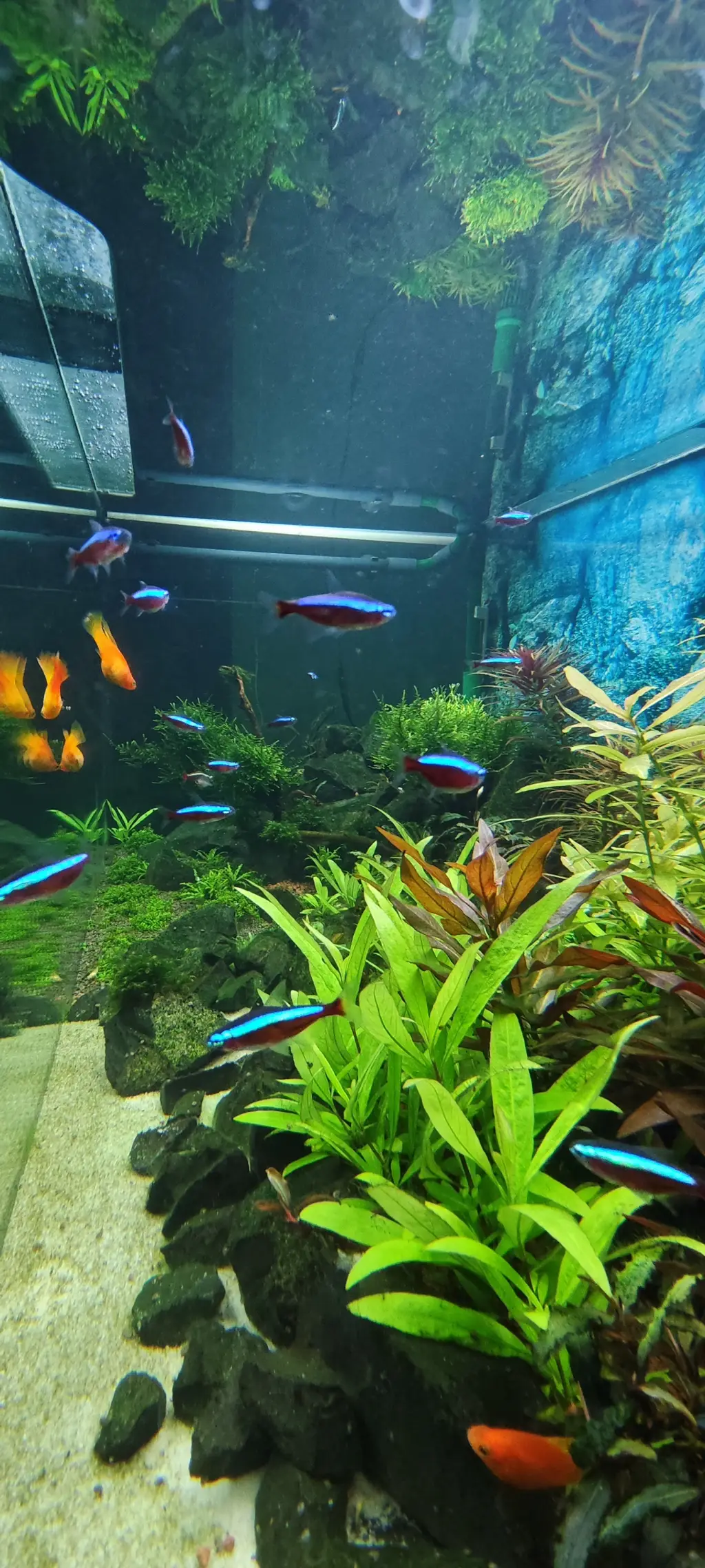 Akvárium 450L | Dnešná výmena vody , cca 30% objemu , výmena PH sondy doplnenie osvetlenia o Sinkor 120cm WRB + pomalé pripadavenie rýb - na foto už komplet po týždni . |