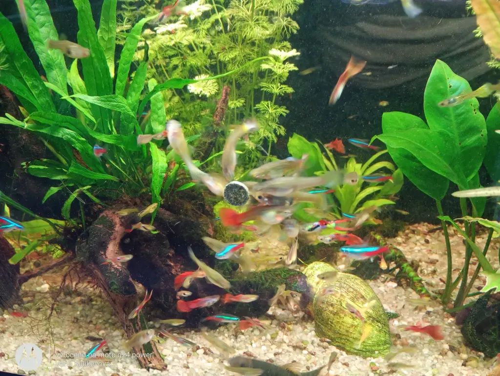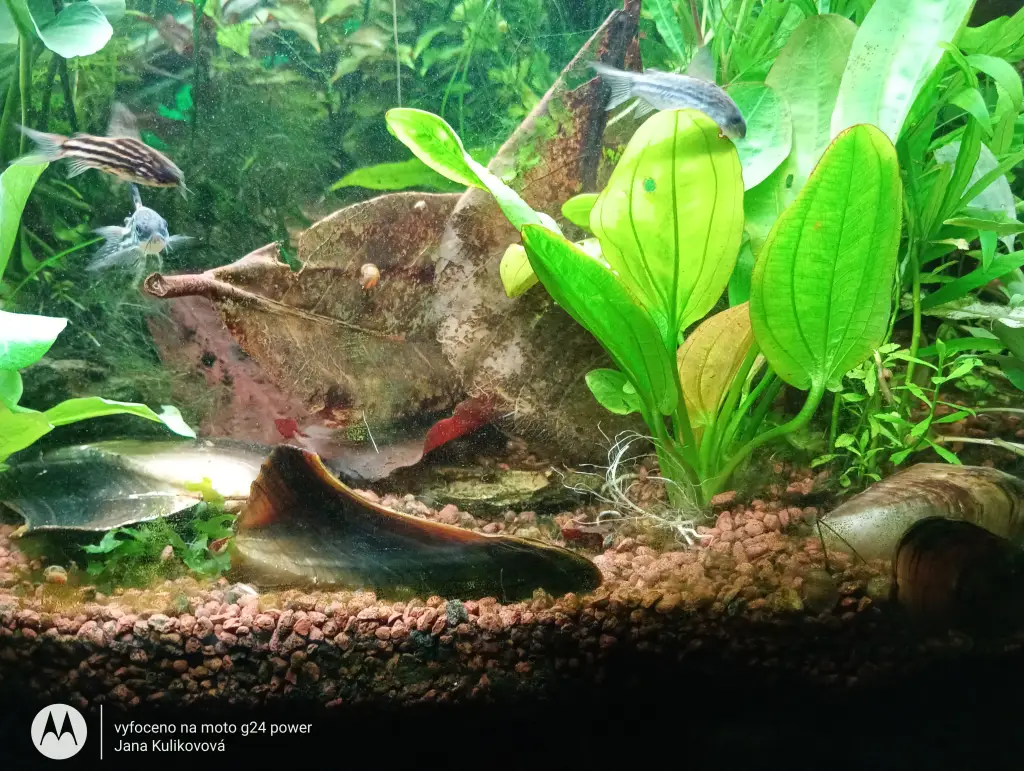 Jonáš | Vyměnil jsem 20 litrů vody a vyčistil filtr. Byla potřeba zkrotit morovinku hustolistou. Mám dojem, že krmivo Dajana Mini Tropical Pellets už nekoupím. |