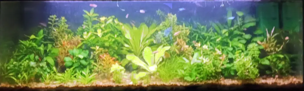 Se stavem akvárka nejsem teď moc spokojená, protože hlavně na anubiasech je docela řasa. Delší dobu jsem flakala výměnu vody a taky pořád bojuji se zarůstáním hladiny. Ty lístečky dokážou udělat pěkně silnou vrstvu a pak je akvárko opravdu v temnotě a rostlinkám se nedaří.