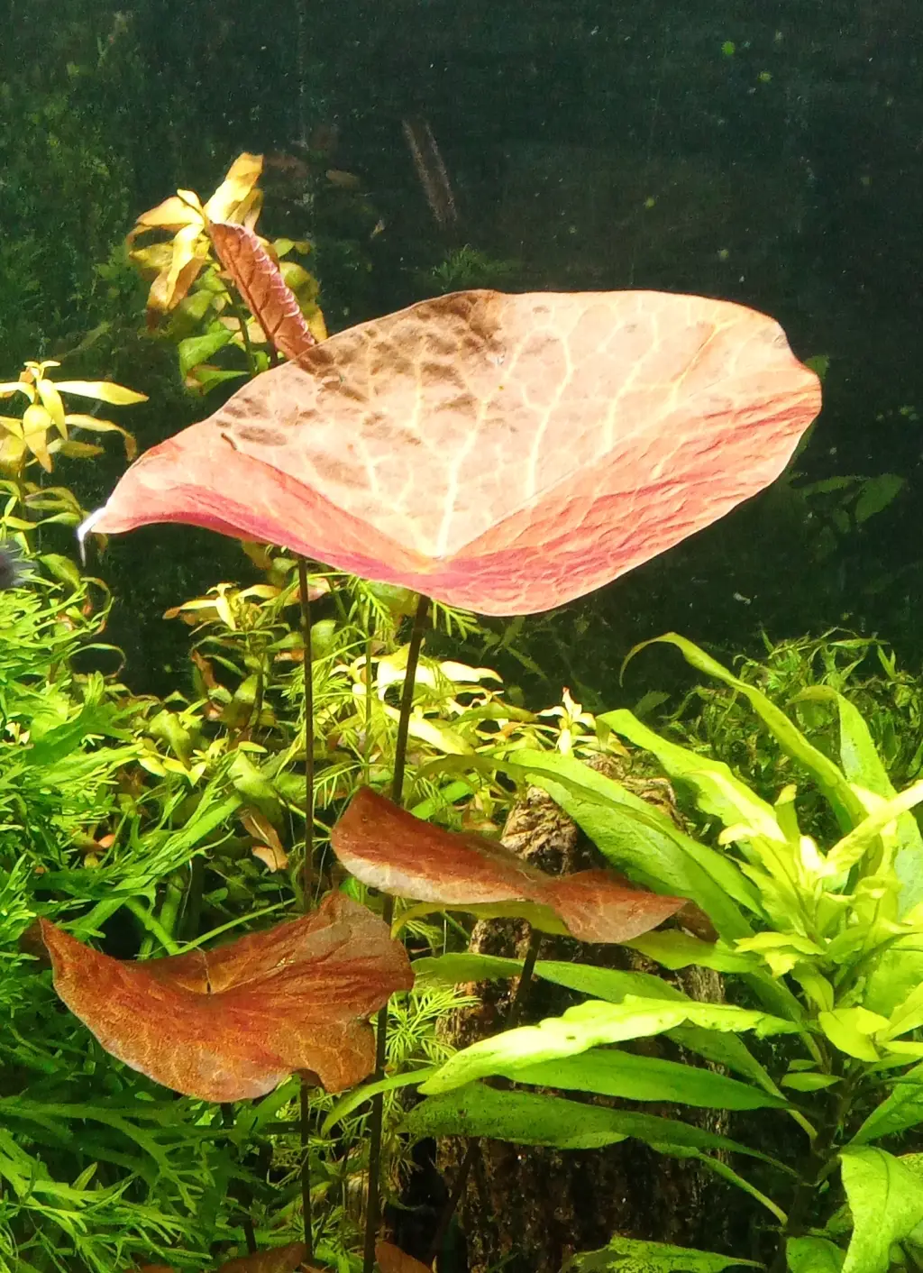 Ložnicový antistres | Nové rostlinky Rostlinstvo doplněno o druhy Echinodorus harbich, Cryptocoryne beckettii (koupena jako Petchii pink) a o Samolus valerandi. Akvárium jsem trochu předělala v jednom rohu, fotka bude až se bordel usadí. |