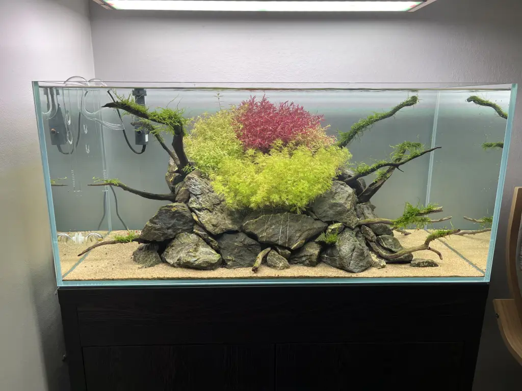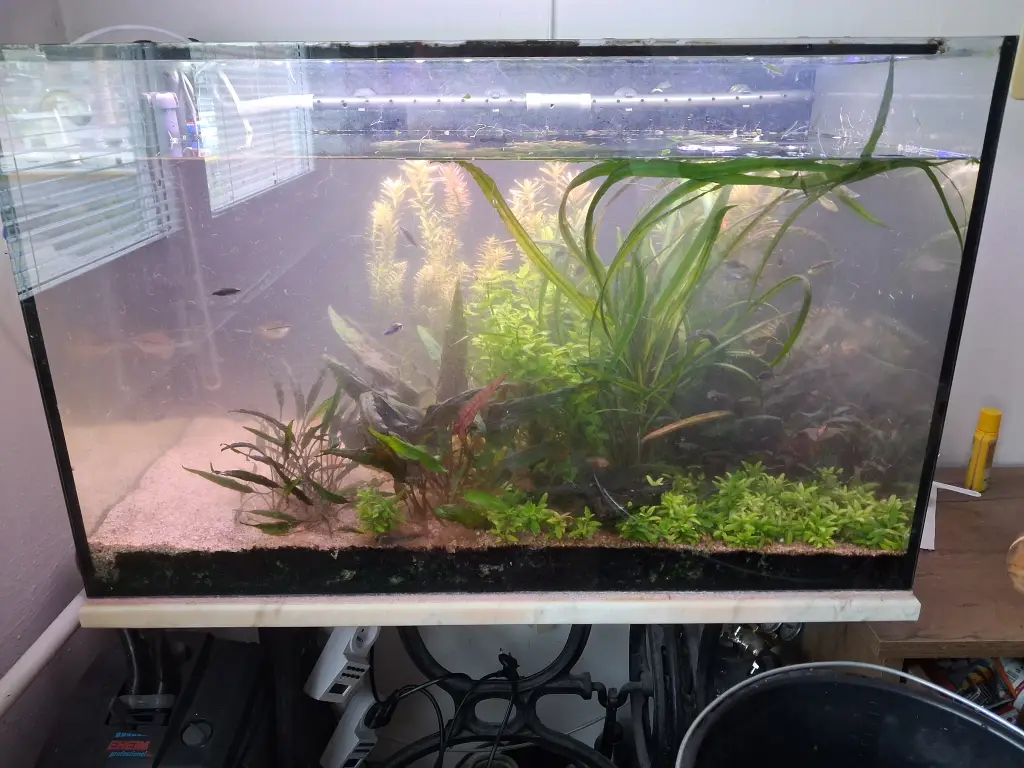 Akvárium 450L | Dneška bežná údržba , vyčistenie celého akvária , odčerpanie cca 30% vody , posadenie pár rastlín . |