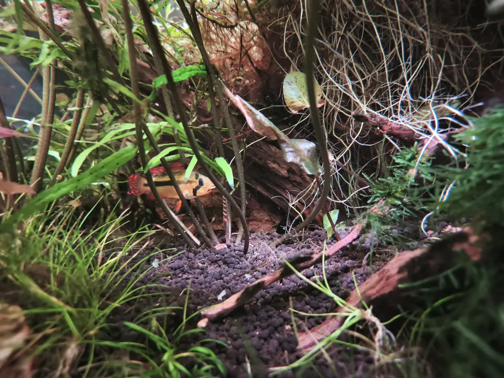 Jediný vedlejší efekt dlouhodobého dávkování CO2 spolu s použitím Seachem Excel je, že krevetky se vůbec nemnoží. Jinak populace k akváriu je stabilní. Ve staré nádrži bez údržby se množili jak divé. Holt je to daň za hitech provedení.