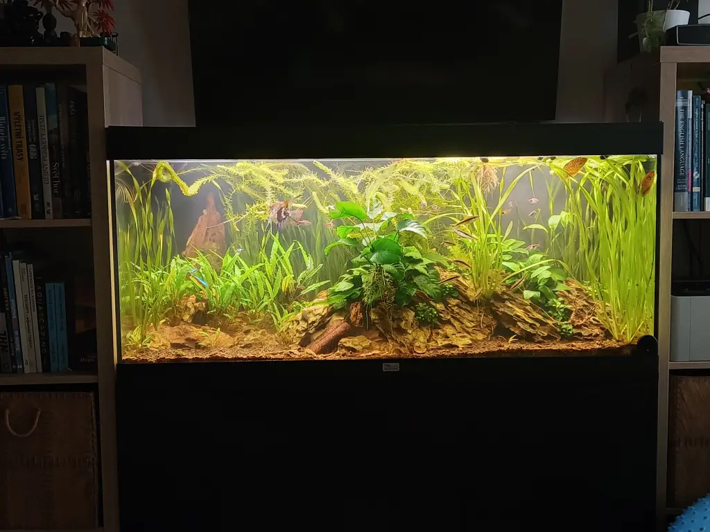 *Johnyho Pisces* | Výmena 50% vody, pridané nitrifikačné baktérie, tekuté hnojivo, očista skiel, prestrih rastlín.