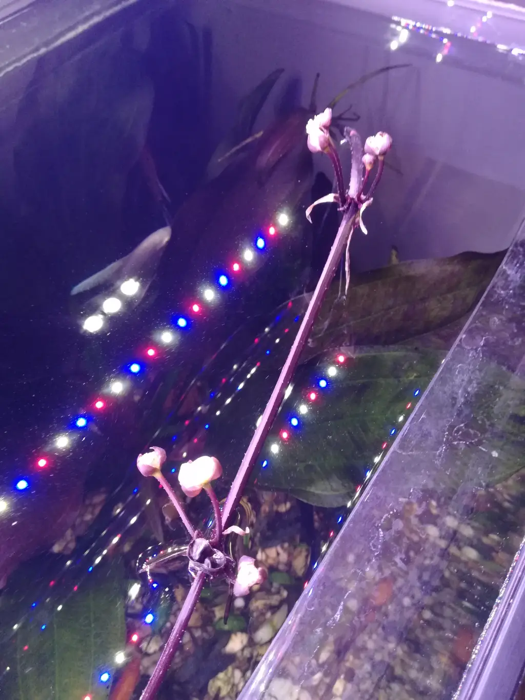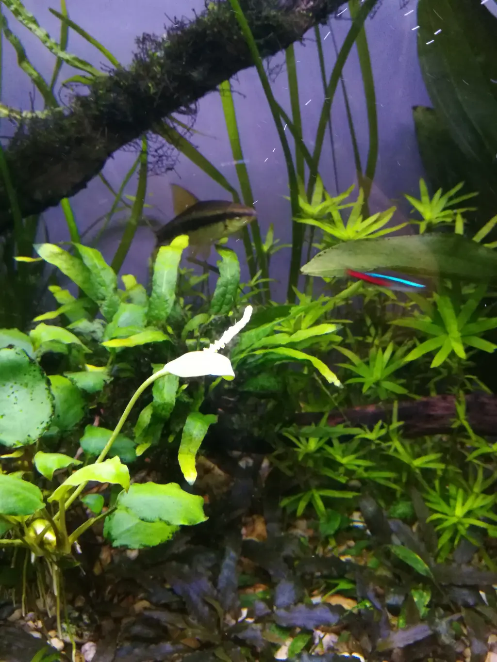 Bodenbach 120F | Během týdne přidáno hnojivo AquaGrower. Micro 14ml, Makro 14ml, Mg 10ml. Devět květů Bucephalander. |